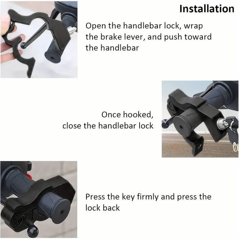 Anti-Theft Lock Bike Motorcycle Handlebar Brake Clutch Security Lock Accessories 100% brand new and high-quality made. Compatible with all two wheeler's with grips up to 1.5inches(38mm) in diameter. Fits fits all Motorcycles, Sports Bikes, Scooters, Mopeds & ATV's. Built-in stainless steel wire, difficult to cut even with a saw. Widely used for all scooters, motorcycles and ATVs. Comes with 2 keys, one for daily use and one spare. Package Includes: 1x Motorcycle Alarm Lock 2x Keys