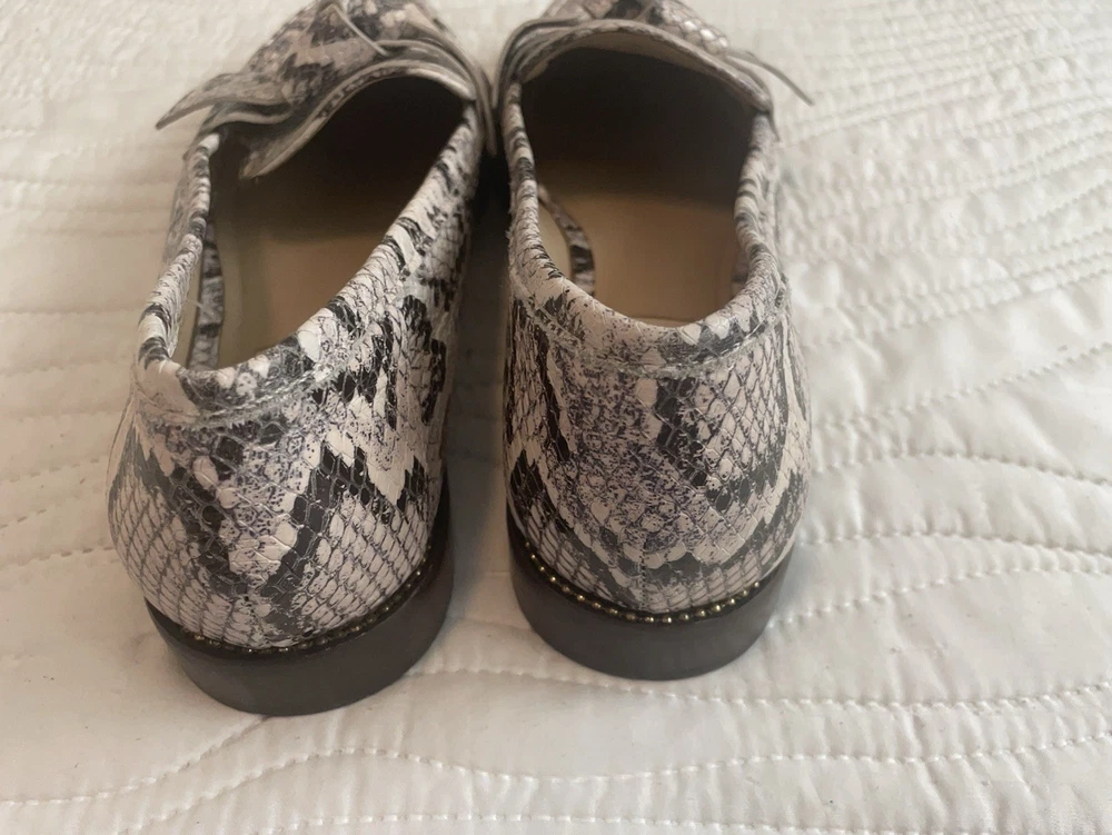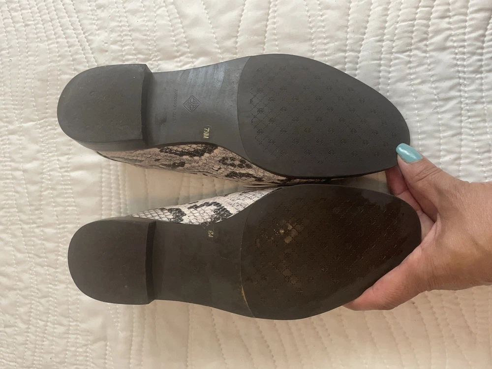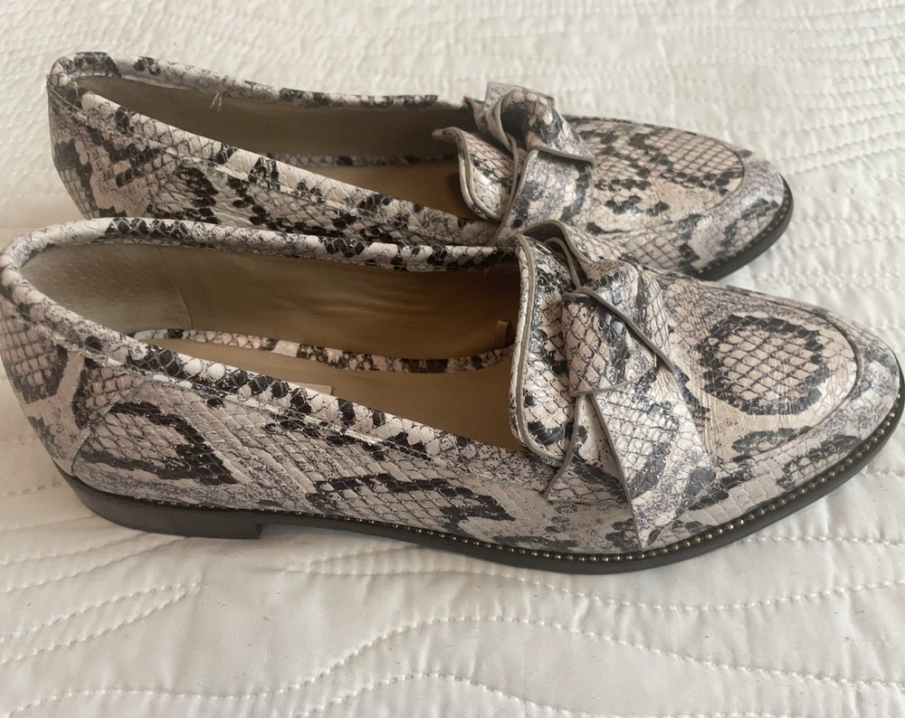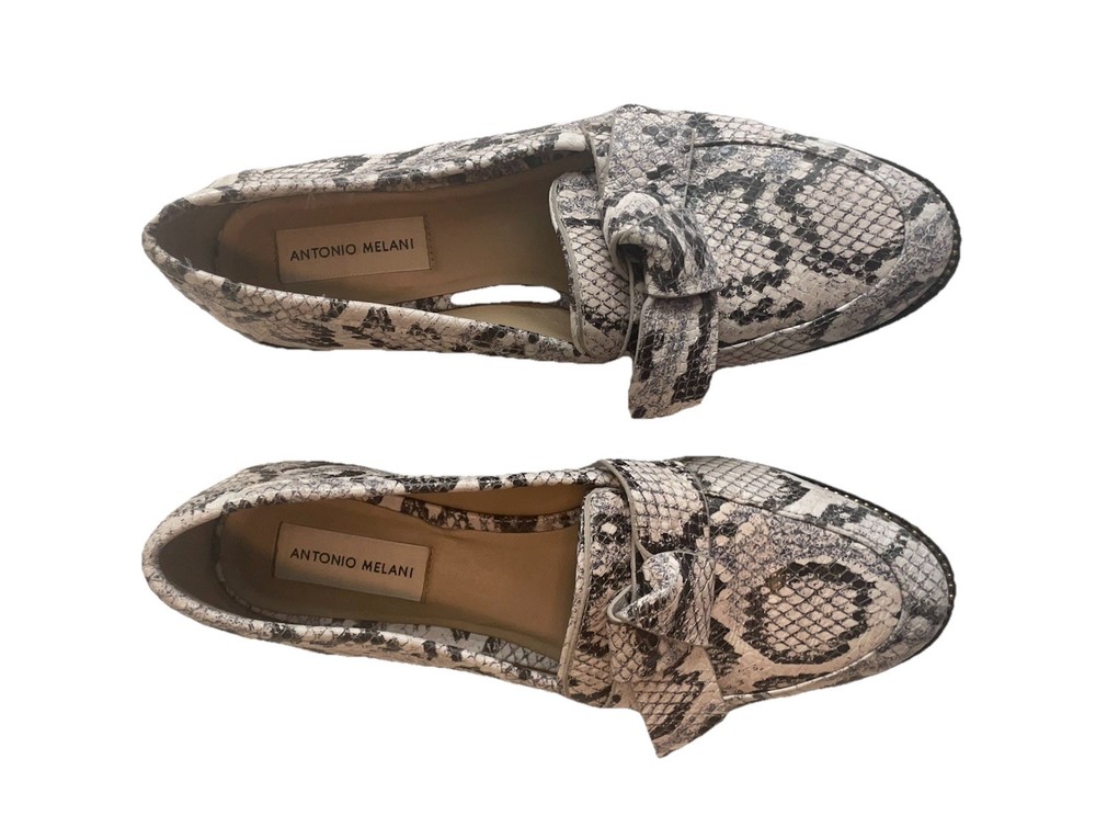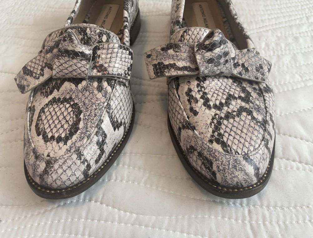 Add a touch of animal print to your shoe collection with these Antonio Melani Women's Leather Loafers. The Darlene Slip-Ons feature a cute and subtle animal print pattern that will make any outfit pop. These flats are perfect for both casual and business occasions and come in a stylish beige color with a bow accent. Crafted with high-quality leather, these loafers have a cushioned insole and a durable leather outsole. The slip-on style makes them easy to wear, and the shoe width is M. These flats are a great addition to any wardrobe and can be worn in any season.