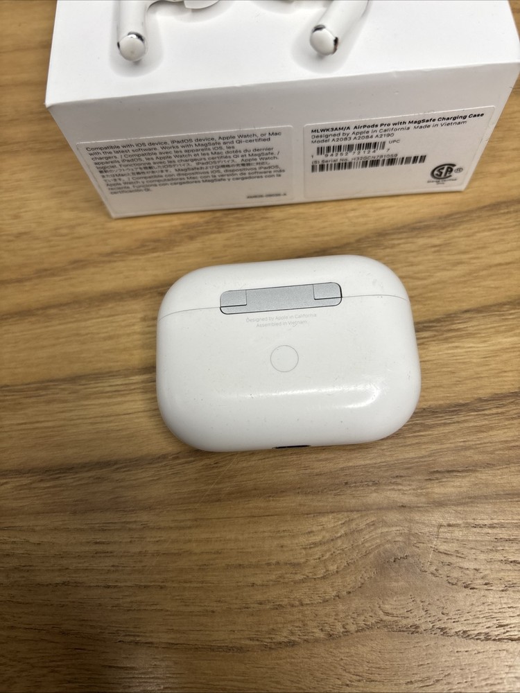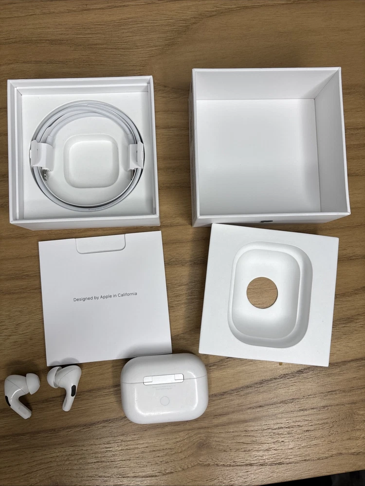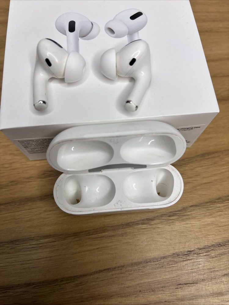 These AirPods work perfectly well but when both are placed in your ears they have a crackling sound that emits from them, when worn one at a time there is nothing wrong. They have been cleaned and sanitized. Comes with box and charging cord.