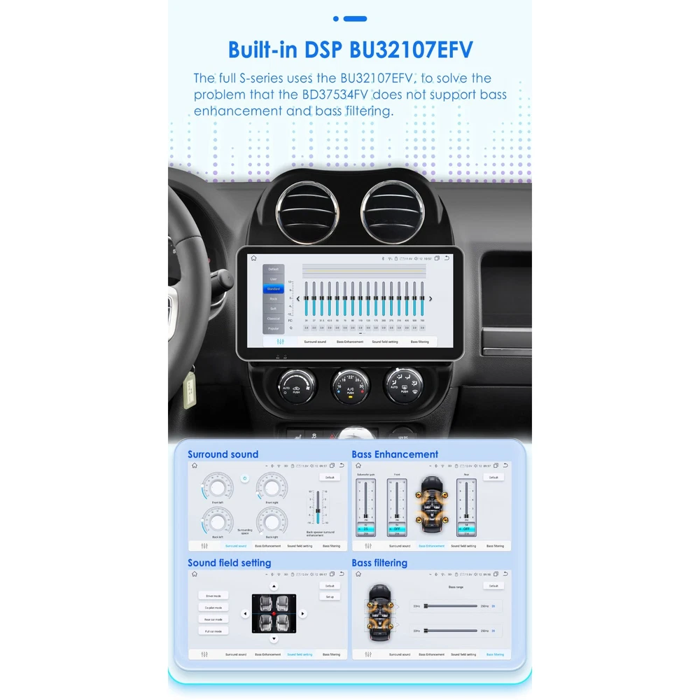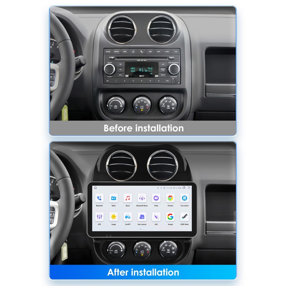 6S1033JPCPS101 Android 12 Apple Carplay Car Stereo Radio For Jeep Compass Patriot 2011-2017 Operation system: Android 12 CPU: ARM Coretex UIS 7862A 8 Core (8x1.8GHz) Android Auto & CarPlay: Supported RAM: 4GB ROM: 32GB GPS Navigation Map: Pre-installed Bluetooth: Yes Steering Wheel Control: Yes - Power Supply: DC 12V (allowance range: 10.8-14.5V) - Max. Current: 10A - Screen Size: 10.33 inch General - Operation System: Android 12 - Series:S6 Series - CPU: ARM Coretex UIS 7862A 8 Core(8x1.8GHz) - RAM: 4GB - ROM: 34GB System - Touch Screen: Yes - Resolution: 1600*720 - Capacitive or Resistance Screen: Capacitive - Built-in Clock and Calendar: Yes, show real time and can use network-provided time - Main Menu Status Bar display: Can be changed to Music/Radio/BT-Stereo Player and Clock/Date/Week - Change Apps-Icon Position: Yes - Key Backlight Color: 7 Button light colors, support RGB Combination Display - WiFi: Built-in WiFi Modem, support 802.11b/g/n - 4G LTE module: Built-in - 4G LTE sim card slot: Yes - 4G LTE Antenna: YES - You just need to insert the 4G LTE sim card before you can enjoy the 4G LTE serivce. WiFi/4G LTE - Explorer: Opera, UCWeb, SkyFile, Dolphin and more explorer for your selection - Online Entertainment: Online Video, TV, Movie, Music, Radio, Video Chat - Online Navigation: Online Maps Navigating - Online Games: Yes, online play or you can download it from google play store - Online Communication: Twitter, Facebook, Skype, Gmail, Whatsapp etc. - Read and edit Office Software: Yes, support Word, Excel, Powerpoint, PDF, TXT Internet - Format: MP3/WMA/MP2/OGG/AAC/MA4/FLAC/APE/WAV etc. Could play via song list - Record: MP3, WMA - Other: LRC synchronized display; ID3 search; Search by files; Album Picture; User-defined audio effect - Amp IC: TDA7851 - SNR: Noise rations:=90dB Audio - Format: Support AVI (H.264, DIVX, XVID), RM, RMVB, MKV (H.264, DIVX, XVID). WMA, MOV, MP4 (H.264, MPEG, DIVX, XVID). DAT (VCD format). VOB (DVD format). PMP, MPEG, MPG. FLV (H.263, H.264). ASF, TS, TP, 3GP, MPG etc. =30 formats, Playing internet video directly (while downloading) - Play: Up to 1920*1080 Pixels, 30Mb. Fluent play without light spot Video - Operation System: Android - Support Maps: Android Map, Sygic, Kudos - Voice Guidance: Yes - Support 2D/3D Map Views: Yes - Dual Zone: Yes, navigating while music playing - Online Navi: Yes, support maps online navigating GPS - Hands Free: Yes - A2DP (Bluetooth Stereo Music): Yes, can play stereo music through Bluetooth - Bluetooth Music Control: Yes, play/pause/previous/next - PB-Download: Yes, can download phonebook from mobile to this unit - PB-Search: Yes, can use the first letter to search contact member in PB-Listings - Calling Records: Yes, Dialed Call, Received Call, Missed Call - Setup: Auto Answer, Auto connect, Device name - Built-in Microphone: Yes, on the front panel - Bluetooth Version: 5.0 Bluetooth - AM Tuning Range: 531-1620KHz - AM Increment: 9KHz(EU)/10KHz(US) - FM Tuning Range: 87.5-108MHz - FM Increment: 0.05MHz(EU)/0.1MHz(US) - FM Area: Europe/USA1/USA2/Japan/Russia - RADIO IC: TDA7708 - It doesn't support XM radio, but you can access the same channels using the XM radio app. Radio - Position: 3 USB Port, can be connected with Media/Camera/DAB+ Box / Smartphone - Capacity: 2TB - Play MP5 Videos: Yes, can play RMVB Videos up to 1080P - Touch Music Title to play directly: Yes USB - Built-in Car Recorder App: Yes, just connect a USB Camera to use this function - Support HD CCD Camera: Yes, 1080P - Play recorded Video directly: Yes - Storing Position: Nand Flash/GPS Card/SD Card/USB Storage can be changed DVR - Built-in DAB Player App: Yes - Connection Port: USB - Power Supply to DAB+ Box directly: Yes - Touch Control DAB+ Box on unit: Yes DAB(+)-IN - Built-in Digital TV Tuner: No (you can contact us to buy it together) - External Port for TV Box: Yes, Support DVB-T/DVB-T2/ATSC/ISDB Box - Power Supply to TV Box directly: Yes, you can connect our TV Box to achieve this function - Remote Control the TV Box on unit: Yes, you can use the Remoter of the TV Box to achieve this function DTV-IN - Textbook: Could change font, font color, background color, bookmark, reading E-book while listening music - Photo Viewer: Support JPS, BMP, PNG, GIF etc. format. play by revolve, Powerpoint Support 4096*4096 Pixels - Wallpapers: 5 live wallpapers, 17 standard wallpapers, support DIY wallpaper from Gallery - APK Installer: Support Android Package installer - Support Torque Pro(OBD2 &Car): Yes, you can connect a Bluetooth OBD2 Scanner Tool to use this function - Support Mirror Link function: Yes, support screen mirroring from iPhone and android smartphone - Support TPMS: YES (Not Included, you can contact us to buy it together) Additional - WiFi/Hotspot/Bluetooth: Yes - Brightness level adjustable: Yes - Wallpaper: Wallpapers/Live Wallpapers/Gallery - Sound: Key Tone & Volume - Storage: Display Internal Storage/Nand Flash/Connected Device Storage - Apps: Running Apps display/force stop/uninstall - Security: Yes - Accounts: Yes - Languages and Input: more than 70 Languages and choose input method - Backup and Reset: Yes - Date and Time: Setting Date&Time by yourself or choose GPS/network-provided time - Accessibility: Yes - GPS: Yes, GPS application options/monitoring/sound mode/mixing ratio - Driving safety: Watching Video, Reversing X-mirror/Volume, Reversing Trajectory/radar Display, Rear view ruler - Amplifier: Rock/Pop/Jazz/Classic/Flat/Voice/Custom - Steering Wheel Control: Yes - About Device: Display Parameter Info. Setup - AUX Video In: One - Rear-View Camera Video In: One - AUX Audio In: R/L - DTV Box In: One - DAB+ Box In: One - Car DVR In: One - Radio Antenna In: One - GPS Antenna In: One Input - Audio Out: R,L - Subwoofer Output: One Output