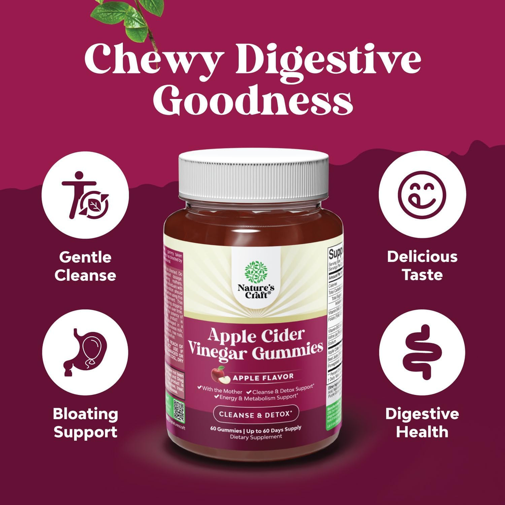 Apple cider vinegar supplements - Our apple cider vinegar gummies with the mother provide you with vital nutrients so you get all the benefits of traditional ACV pills and apple cider vinegar capsules Immune support gummies - We packed our pure apple cider gummies for adults with the best immunity vitamins for natural immune gummies and digestive support you can trust to stay at your best Pre workout gummies - Support your workout results with gummy apple cider vinegar formulated with vitamin B6 vitamin B12 iodine and folate to cleanse your body and help you reach your goals faster Natural gummy vitamins for adults - Our adult gummy vitamins are made using pure and nutrient rich ingredients like beet root powder and pomegranate juice powder for deliciously chewable vitamins Formulated in the US - Here at Natures Craft we have your needs in mind that is why our gummy vitamin ACV supplements are gluten free non-GMO formulated by GMP labs and 3rd party tested for potency Product Description The video showcases the product in use. The video guides you through product setup. The video compares multiple products. The video shows the product being unpacked.