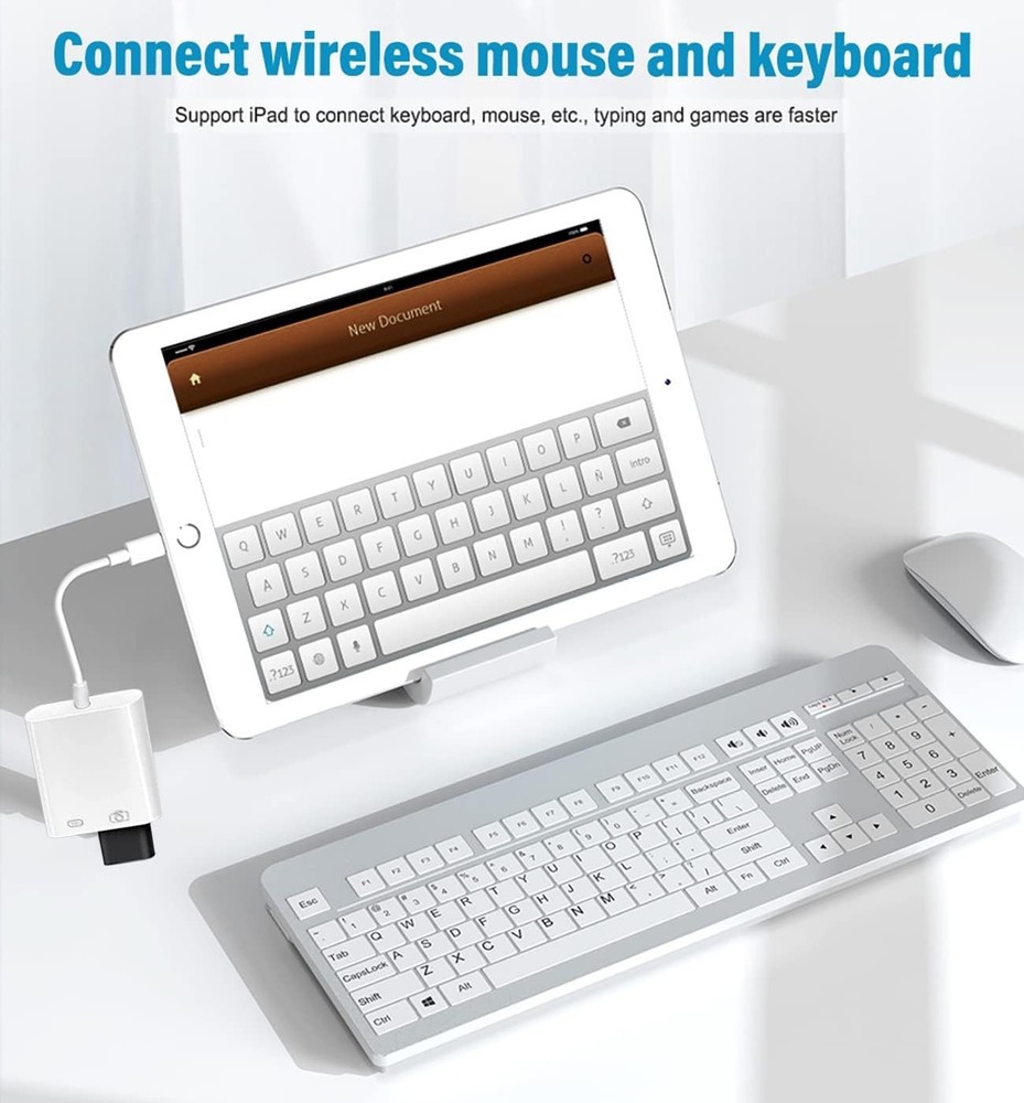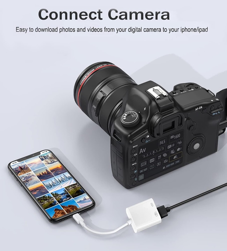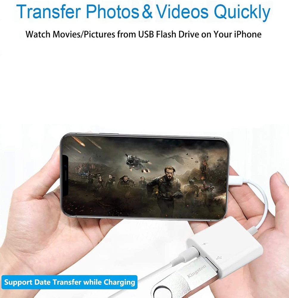 Lightning to USB Camera Adapter with Charging Port, Apple MFi Certified USB 3... About this item Widely Compatible: Lightning to USB Adapter with Apple MFi certification for iPhone 14, 14 Plus, 14 Pro, 14 Pro Max, 13, 13 mini, 13 Pro, 13 Pro Max,12, 12 mini, 12 Pro, 12 Pro Max, 11, 11 Pro, 11 Pro Max, X, XS, XR, XS Max, 8, 8 Plus, 7, 7 Plus, 6S, 6S Plus, 6, 6 Plus, 5, 5S, 5C, iPad Mini, Mini 2, Mini 3, Mini 4, Mini 5, iPad Air, Air 2, Air 3. Plug and Play: Simple and easy to use, no need any setup. freely share photos and videos from camera to social network, no need to use computer anymore, perfect for entertainment, travel or business use! Upgraded Version: This iPhone USB Camera Dongle with Charging Port support USB 3.0, transmission speed up to 5Gbps. it also support USB 2.0, The transfer speed is 25MB/S-35MB/S which is 3 times faster than others, date transfer while charging, help you save more time. Peripheral Devices Support: This USB Female OTG Data Sync Connector Cord can be widely use for more USB Device, such as Digital camera, card reader, USB flash drive, MIDI, keyboard, Mouse, U Disk, electronic piano, Hubs, Drum, Audio Interface, Mixer, USB Microphone etc. Widely Support Formats: The iPad USB camera converter supports standard photo formats like JPEG and RAW, along with SD and HD video formats including H.264 and MPEG-4; also support Word, Excel, and PDF, etc.