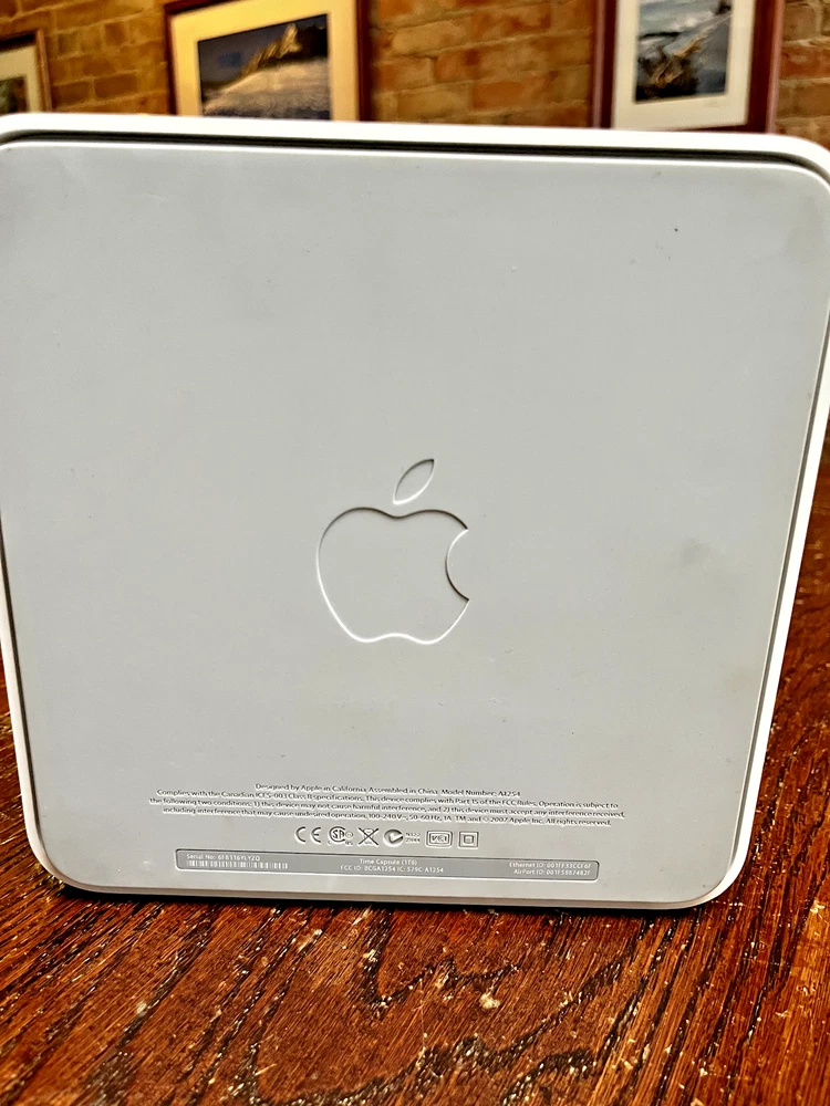 Time to upgrade your Wifi! Or not! Description: Does your Wi-Fi need a new best friend? Look no further. This pre-loved Apple Time Capsule is ready to help you back up files! Condition: It's had one owner, but it is used. Features: Backup your memories: You can still save that embarrassing video from 2010. Wi-Fi boost: It’ll probably help your Wi-Fi. We’re not saying it will work miracles, but we’re also not saying it won’t. "Vintage" status: If you ever want to impress your friends with your retro tech, this is the piece
