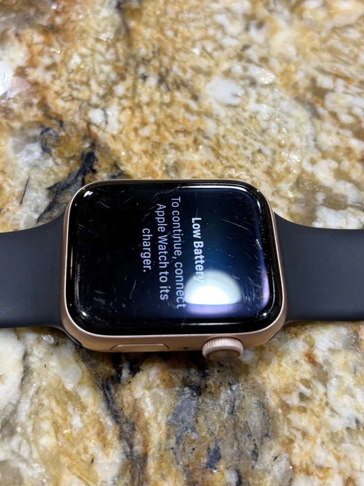 Screen has scratches but no cracks The sensor on the bottom is cracked as shown in the picture. It hasn’t affected the functionality at all, I even took it swimming. I’m selling because the battery needs to be replaced. You can buy a new one from IFIXIT for $20