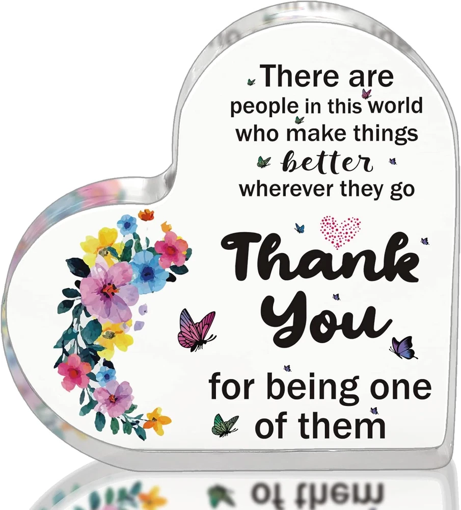 Store New Arrivals Add to Favorite View Feedback Contact Fast deliveries to the customer's home Quality customer service John Make the customers happy! Appreciation Gifts for Women, Thank You Gifts for Women Grateful Gifts Acrylic Heart Keepsake for Female Teacher Colleague Boss Volunteer Nurse Doctor Manager Director Superior C017 Description 【Inspirational Appreciation Gift】: This acrylic heart keepsake features the heartfelt quote, "There are people in this world who make things better wherever they go, thank you for being one of them," surrounded by blooming flowers. It's the perfect way to express your gratitude to women, teachers, colleagues, bosses, nurses, doctors, family, friends, volunteer, manager, director, superior and more. 【Premium Freestanding Design】: Crafted from high-quality, clear acrylic, this decoration is lightweight, smooth to the touch, and durable. It won’t fade or break easily, ensuring long-lasting appreciation for the recipient. 【Timeless Souvenir】: Designed with a flat bottom, this heart-shaped keepsake can stand freely on tabletops, shelves, or fireplaces without any support. The engraved inspirational quotes and floral design will never fade, just like your appreciation. 【Versatile Home Décor】: This elegant acrylic heart adds a sophisticated touch to any home or office. It’s perfect for displaying in bedrooms, living rooms, kitchens, dorm rooms, bathrooms, and more, bringing a vibrant and warm atmosphere to your space. 【Heartfelt Gift for Any Occasion】: Featuring bright colors and warm words, this gift makes a meaningful token of appreciation for special occasions such as anniversaries, birthdays, graduations, Christmas, Mother’s Day, Thanksgiving, and beyond. Show your heartfelt appreciation with this Acrylic Heart Keepsake, the ideal Thank You Gift for the special women in your life. Designed with floral details and a motivational quote, it’s perfect for expressing gratitude to a Teacher, Colleague, Boss, Volunteer, Nurse, or Doctor. Crafted from premium acrylic, it features the uplifting message: "There are people in this world who make things better wherever they go, thank you for being one of them." The smooth, freestanding heart shape adds elegance to any space, whether at home or in the office. Perfect for occasions like Anniversaries, Birthdays, or Graduations, this Inspirational Gift will bring joy to its recipient and serve as a lasting reminder of their positive impact. Whether you're showing appreciation for a Teacher's dedication or a Nurse's compassionate care, this keepsake is more than a decoration—it’s a symbol of your gratitude for those who have made a difference in your life. Mounting Type Tabletop Appreciation Acrylic Heart Keepsake Color white Material metal, cyrstal, Acrylic Material Type metal, cyrstal, Acrylic Shape Heart Theme Flower Style Name Appreciation Pre Printed Text There are people in this world who make things better wherever they go, thank you for being one of them. Recommended Uses For Product Property Item Dimensions L x W 4.7"L x 4.7"W ABOUT US We offer the best prices around on high quality products. Our E-store includes media such as books, movies, music and games while offering electronics, toys, sporting apparel, clothing, tools, general home, garden items and more. SHIPPING We are always working hard to ensure your package arrives as soon as possible. Please understand that some factors like weather, high postal traffic, and the performance of shipping companies are outside of our control. We offer free shipping to the lower 48 states and ship within 2 business days of payment, usually sooner. We do not accept P.O. Boxes. Please provide a physical address. For shipping outside of the continental USA, we only use eBay's Global Shipping Program. The item is shipped to KY and then sent to the rest of the world. International customers are responsible for all duties and taxes. Continue to 'check out' to calculate costs for shipping the item to your country. Messages regarding eBay's Global Shipping Program MUST be directed at eBay EXCLUSIVELY. RETURNS We offer a 30-Day Return Policy on items in which you are not completely satisfied with. You have the option of a full-refund or an exchange of the item. No returns are available on items shipped outside of the USA PAYMENT We accept PayPal. CONTACT US This page content is yet to come Please ad us to your favorite seller and visit again later Thank You CUSTOMER SATISFACTION We try our very best to make sure every customer is completely satisfied. If there's a problem, message us! We're happy to help. WE ACCEPT