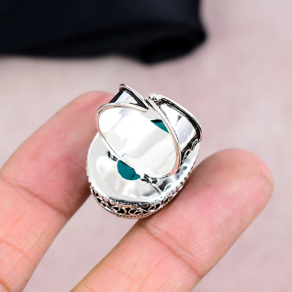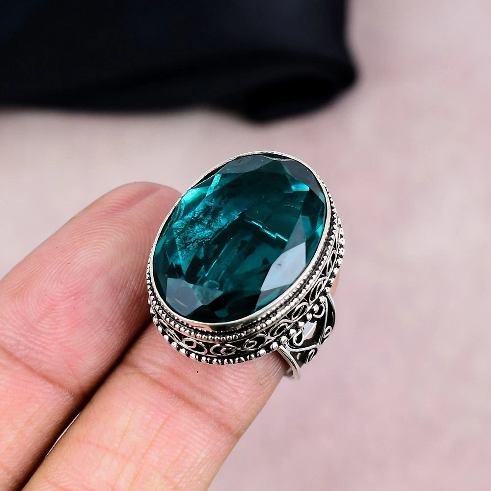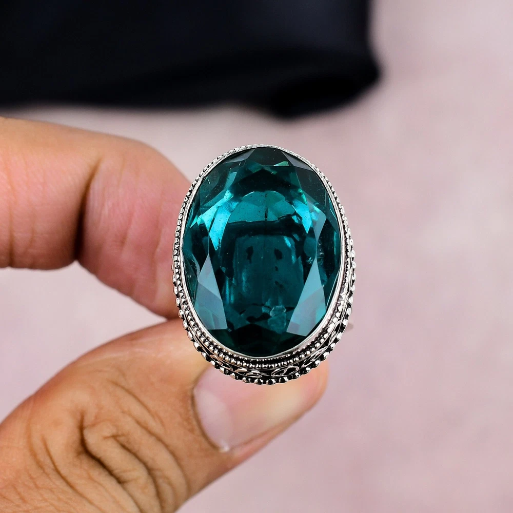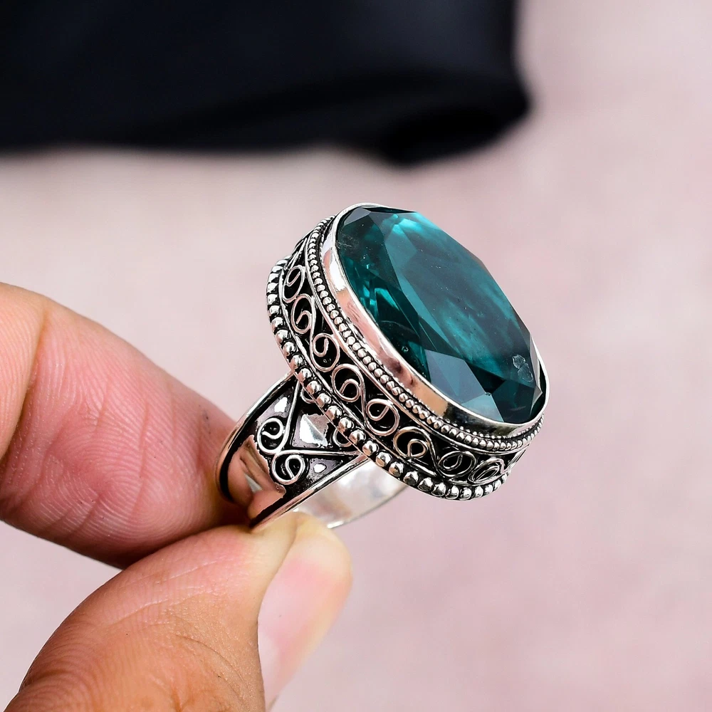 Aqua Apatite Gemstone Silver Ring 925 Sterling Silver Handmade Jewelry Gift Love