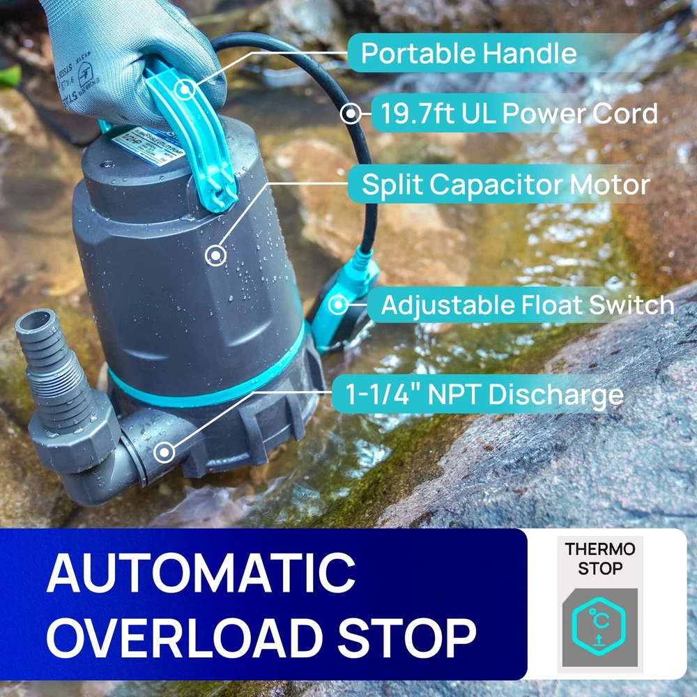 Aquastrong 1/2 HP Utility Pump 3159 GPH Submersible Water Pump with Float Switch, Draining Flooded Basement, Pool, Hot Tub, Pond, Garden Irrigation, 19ft Cord
