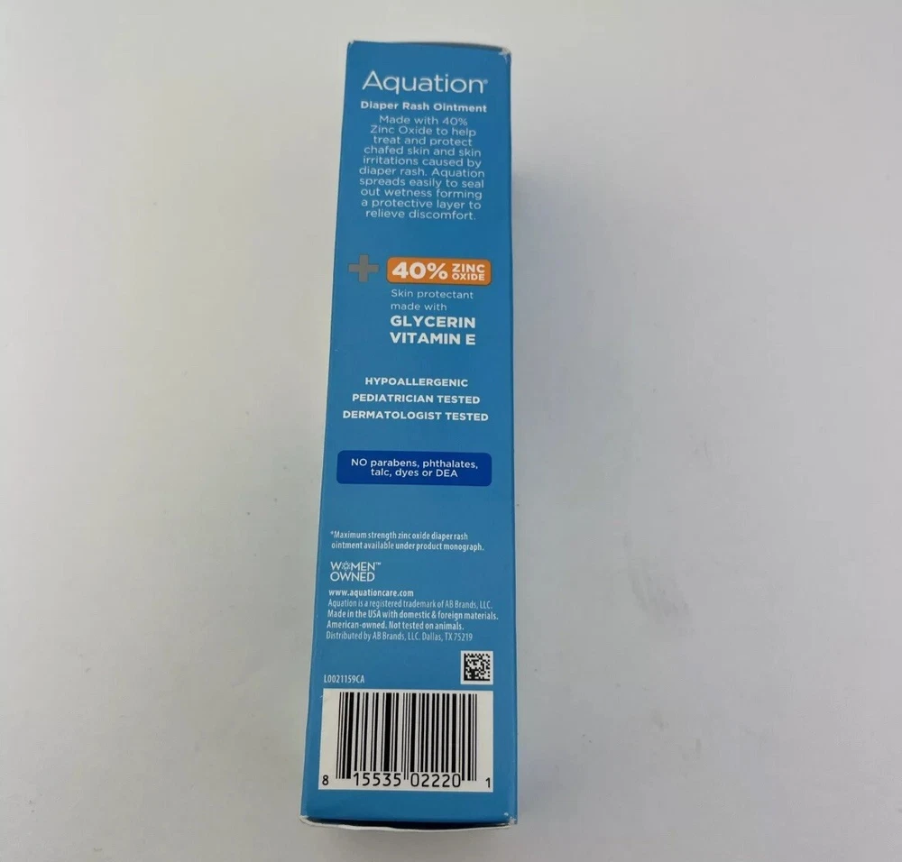 This Aquation Max Strength Baby Diaper Rash Ointment is the perfect solution for your little one's delicate skin. Made with 40% Zinc Oxide and Vitamin E, it is specially designed to protect and soothe your baby's skin from diaper rash. With 2 tubes included, you can rest assured that your baby will be comfortable and healthy. The brand Aquation is known for its quality products, and this ointment is no exception. It is easy to apply and has a pleasant scent that your baby will love. Whether you're a first-time parent or have been through this before, this ointment is a must-have for your baby's skin care.