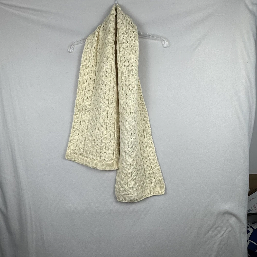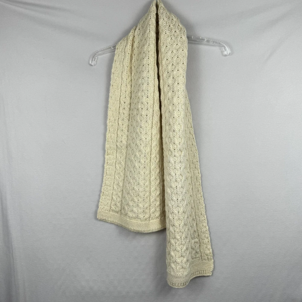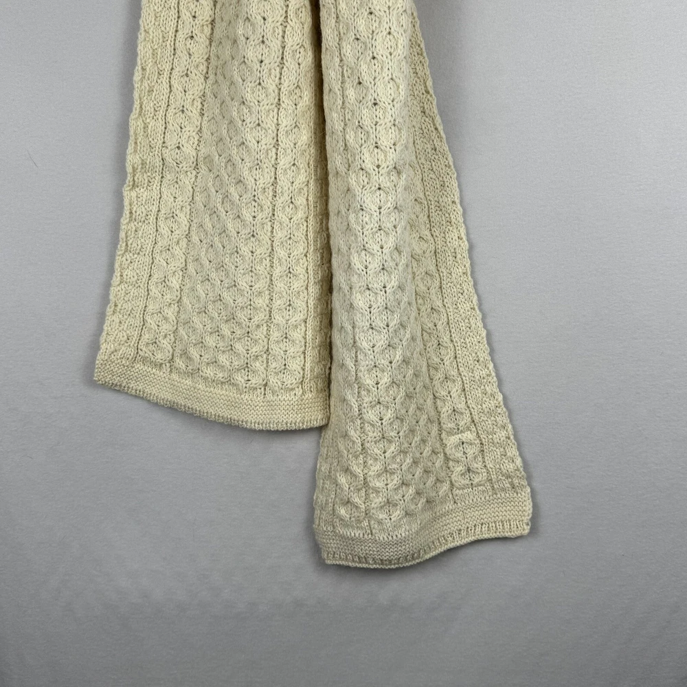 Aran Crafts 100% Irish Wool Scarf Cable Knit Cream Boho Hippie Outdoor Warm Cozy
