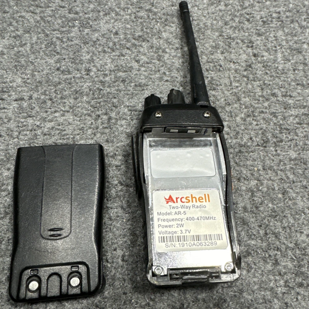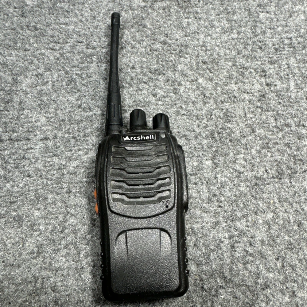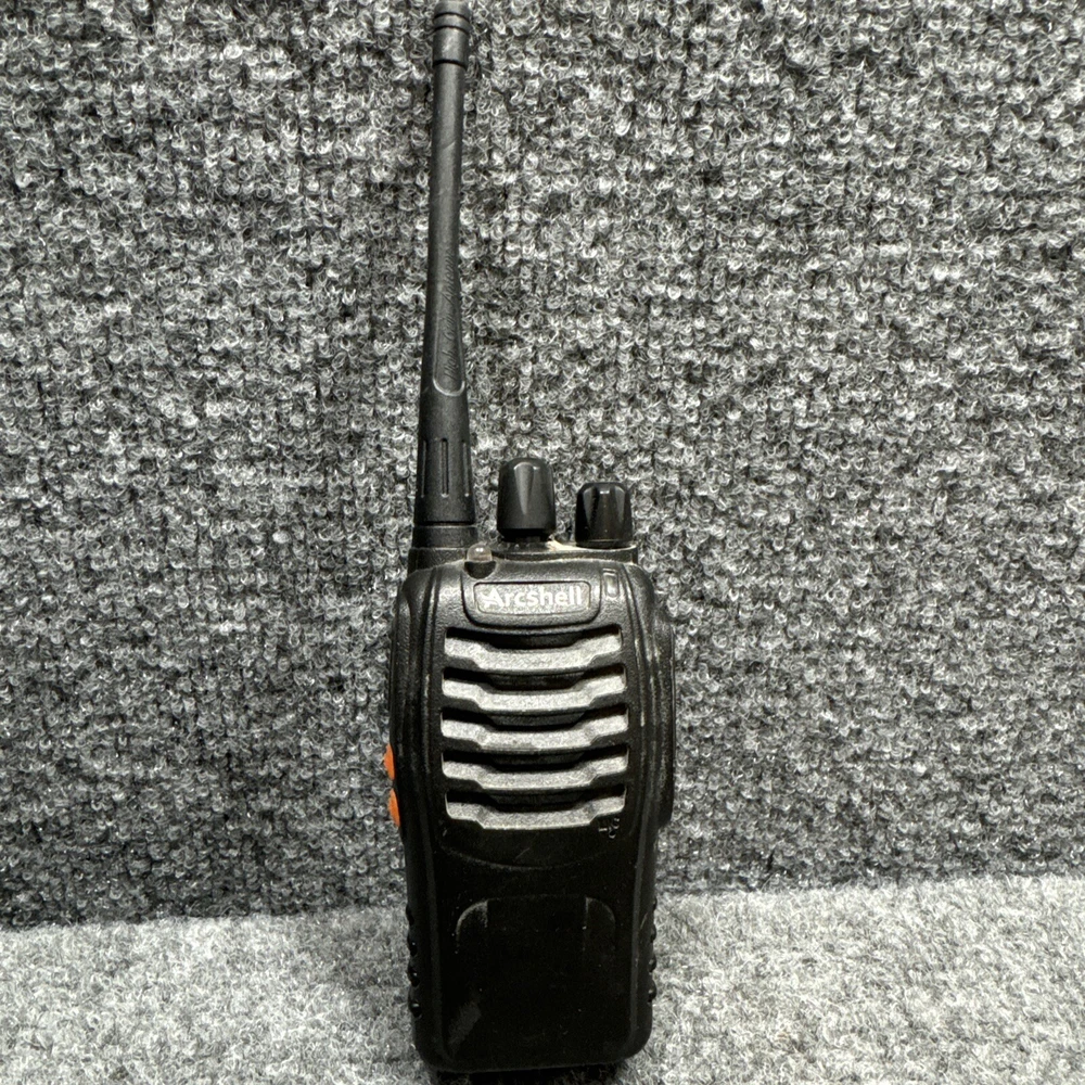 Introducing the Arcshell AR-5 Black 16-Channel UHF Rechargeable Two-Way Radio Walkie Talkie. This high-quality unit offers a range of features including channel monitoring, long-range communication, waterproof design, and rechargeable battery power. It is perfect for use in a variety of settings, from outdoor activities to business communication. With 16 channels and a UHF band, this walkie talkie provides clear and reliable communication. Its sleek black design adds a professional touch to any communication setup. The Arcshell AR-5 is a reliable and versatile unit that will meet all your communication needs.
