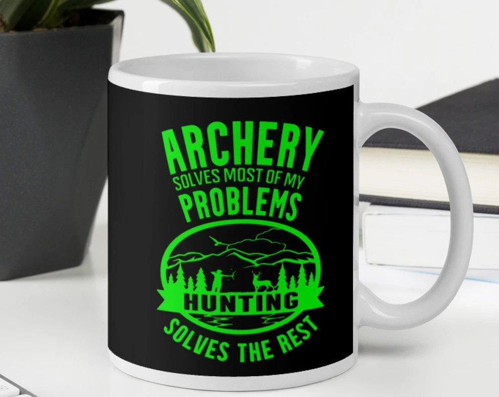 Archery Hunting Bowhunting Solves My Problems Funny White Glossy Coffee Tea Drinking Mug Cup Product Details.. This high quality 11oz. ceramic white mug has a premium hard coat that provides crisp and vibrant color reproduction sure to last for years. Perfect for all hot & cold beverages. The highest quality printing possible is used. It will never fade no matter how many times you wash it. Material: 100% Ceramic. Print both sides. Dishwasher and Microwave Safe. High Gloss + Premium White Finish. Printed in the U.S.A. Personalized & Custom. We support personalized and custom mug to add custom, when placing an order, you can add notes to the "order note" in shipping address section. Also you can contact us directly via message. Shipping Info. Ready to ship in 1 to 2 business days, All products are made-to-order and proudly printed in the United States. Shipped by USPS and DHL, You will receive your order in 5-7 days. Replace & Refund. All products are defective during shipping broken, chipped will be replaced free of charge. You are not satisfied with the product, we will refund 100% money to you. If any other issues arise, please do not hesitate to message, we would be more than happy to assist you.