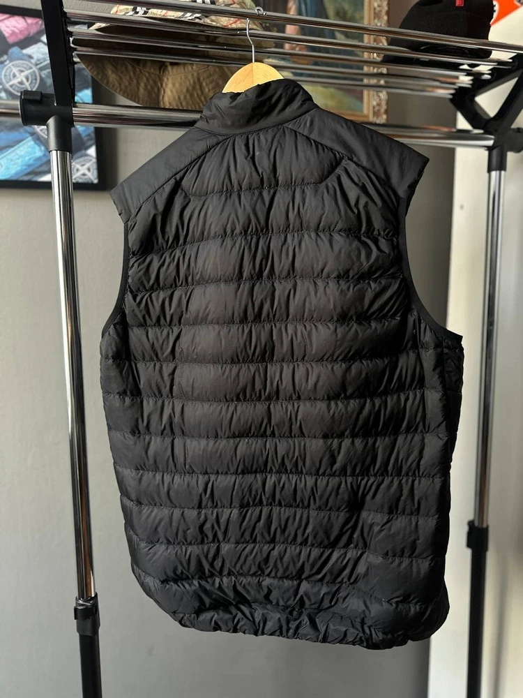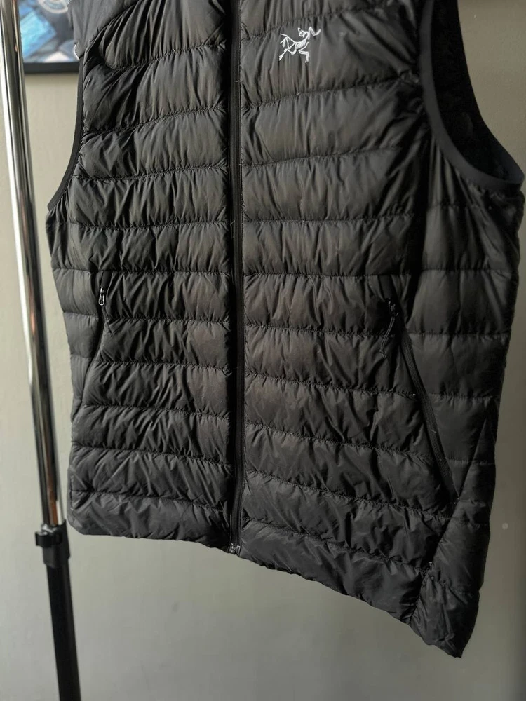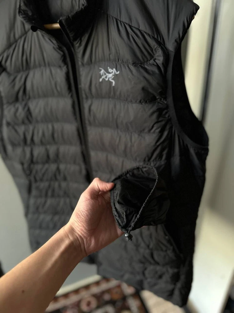 This Arcteryx Cerium Down Puffer Vest is a rare find for those who love high-quality outdoor clothing. The vest is made of durable nylon material and features a full zip closure, making it perfect for all seasons. It is wind-resistant and lightweight, making it ideal for activities such as cycling, hiking, and camping. The vest is also heated, providing warmth during cold weather, and has padded insulation for added comfort. The black color and check pattern add a stylish touch to the design, while the Arc'teryx logo accents the vest's quality. This vest is perfect for those who want to stay warm and comfortable while enjoying the outdoors.