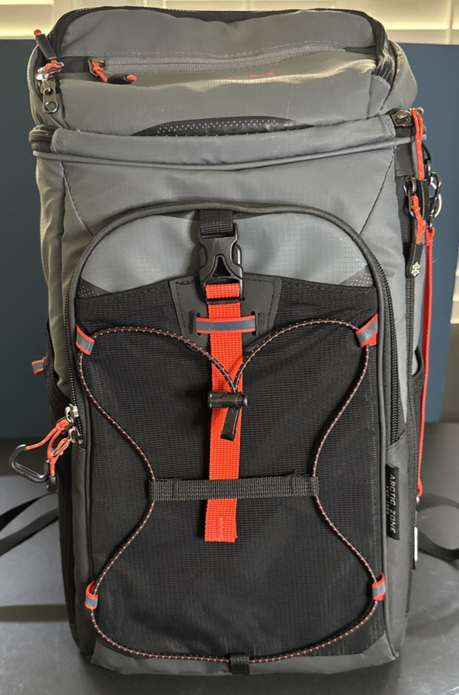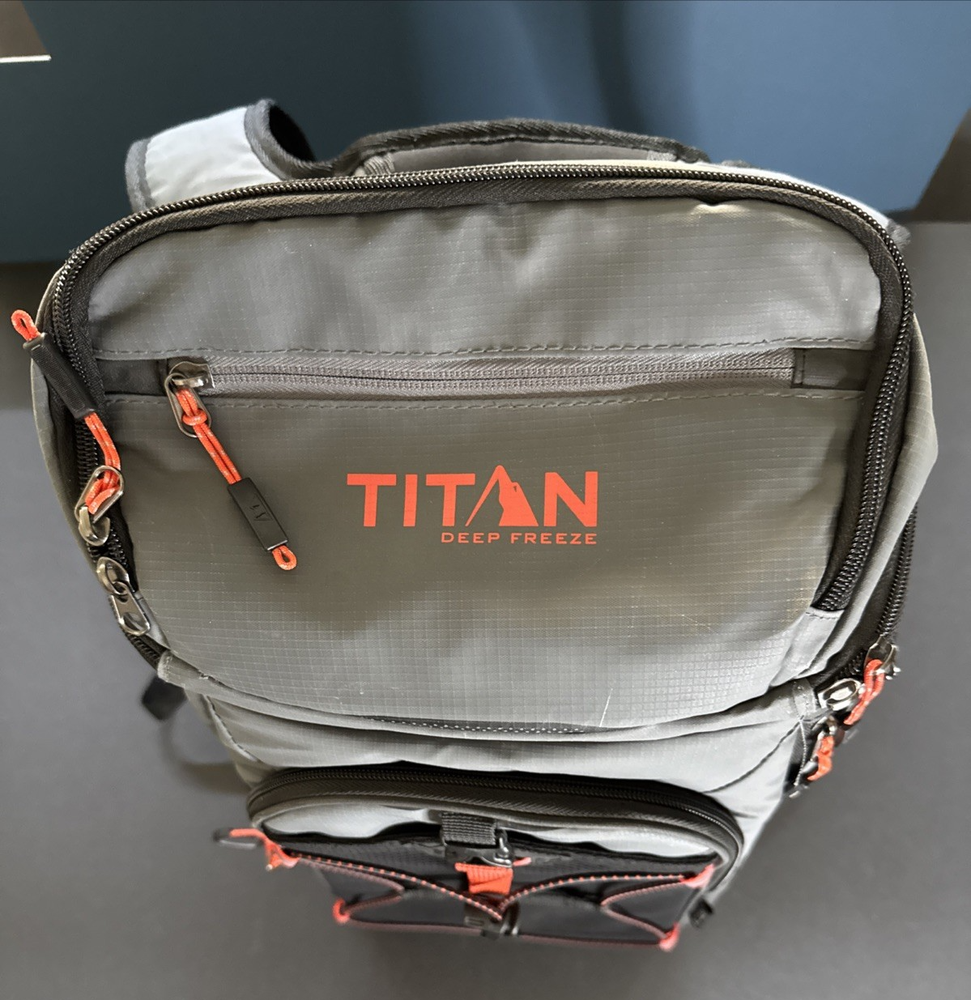 ✨ Description Stay cool on every adventure with this Arctic Zone Titan Deep Freeze 24-Can Insulated Backpack Cooler in gray and orange. Designed for portability and performance, this backpack keeps your food and drinks cold for hours with its Deep Freeze high-performance insulation and Therma-Flect radiant barrier lining . Perfect for hikes, picnics, camping trips, or beach days — it’s durable, stylish, and built to perform under the summer sun. Details: Brand: Arctic Zone Model: Titan Deep Freeze 24-Can Backpack Color: Gray with Orange Trim Capacity: Holds up to 24 cans Features: Deep Freeze high-performance insulation Therma-Flect radiant barrier interior Leak-proof, easy-clean lining Adjustable padded shoulder straps Exterior mesh pockets & bungee attachment system Zippered storage compartment Condition: Excellent pre-owned condition; clean interior, minimal exterior wear (see photos) Ships securely and quickly from Alley Cat Outlet , where cool finds meet cooler adventures! 🐾 🔑 Keywords Arctic Zone Titan cooler, insulated backpack, Deep Freeze 24 can, leakproof lunch cooler, outdoor travel gear, hiking camping cooler bag, Titan gray orange, Alley Cat Outlet