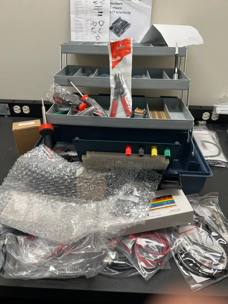 Huge Arduino Hobby Experiment Kit! Includes tools, storage case, cables, goggles, boards, etc. etc.! NOTE: NOT YOUR TYPICAL ARDUINO KIT SOLD ON eBay! Huge! For the Arduino hobbyist . Please look at ALL the photos. This kit is huge and sure to be a winner! I have three of these kits still 100% brand new. Leftover from a student group buy-in lot. Get your item FAST - I ship generally within 24 hours of receipt of payment. ** PLEASE CHOOSE your preferred method of shipping from the drop-down shipping choice. Most people who choose PRIORITY MAIL can expect to receive their items in 2 to 3 days! Or- you may make arrangements for pickup to save on shipping if local to the Fredericksburg VA area. Bid with confidence in my almost 1,900 100% positive feedback rating. Thanks for looking.