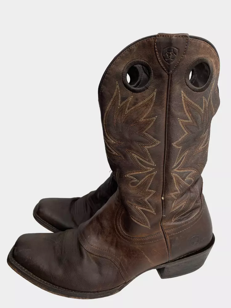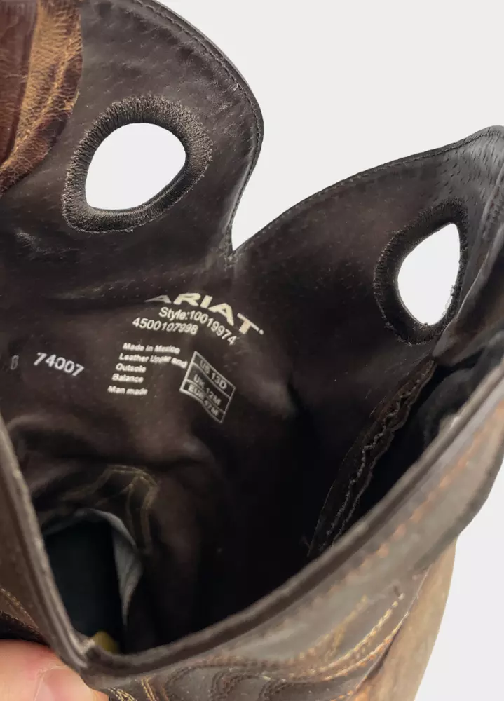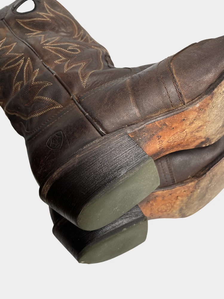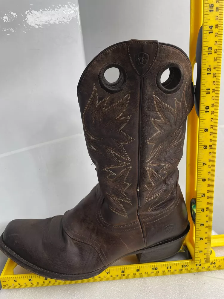 Pattern: Western Closure: Pull On Department: Men Shoe Width: D Toe Shape: Square Toe Brand: Ariat Upper Material: Leather Product Line: Ariat Circuit Striker Theme: Cowboy Type: Boot US Shoe Size: 13 Accents: Embroidered Features: Comfort Color: Brown Style: Western Model: Ariat 10019974