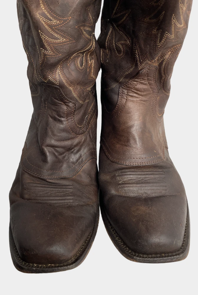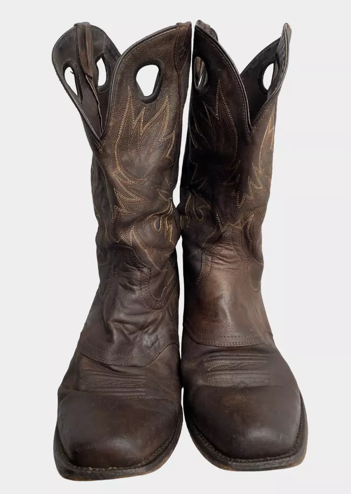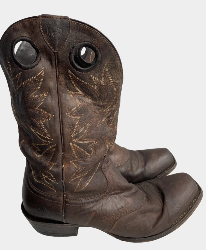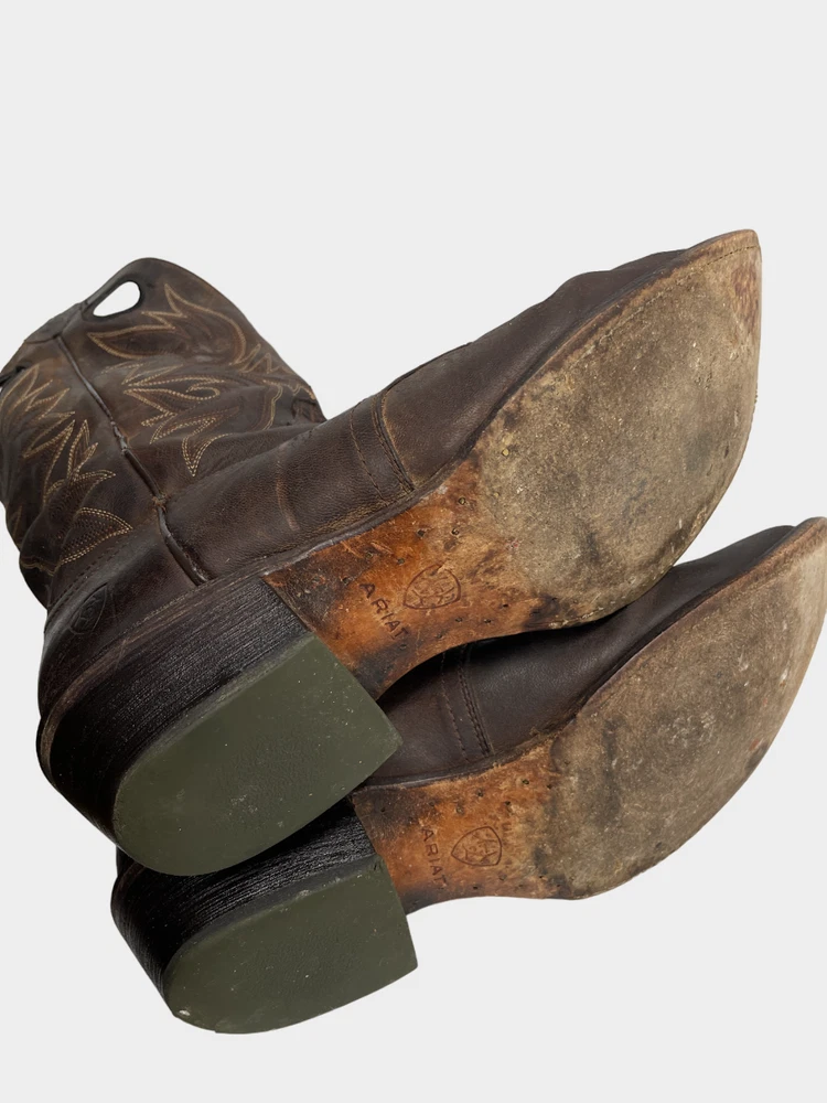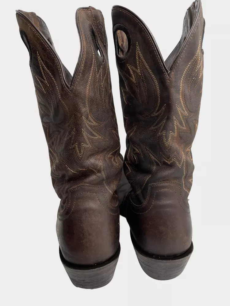 Pattern: Western Closure: Pull On Department: Men Shoe Width: D Toe Shape: Square Toe Brand: Ariat Upper Material: Leather Product Line: Ariat Circuit Striker Theme: Cowboy Type: Boot US Shoe Size: 13 Accents: Embroidered Features: Comfort Color: Brown Style: Western Model: Ariat 10019974