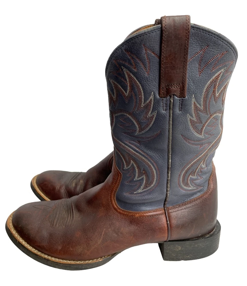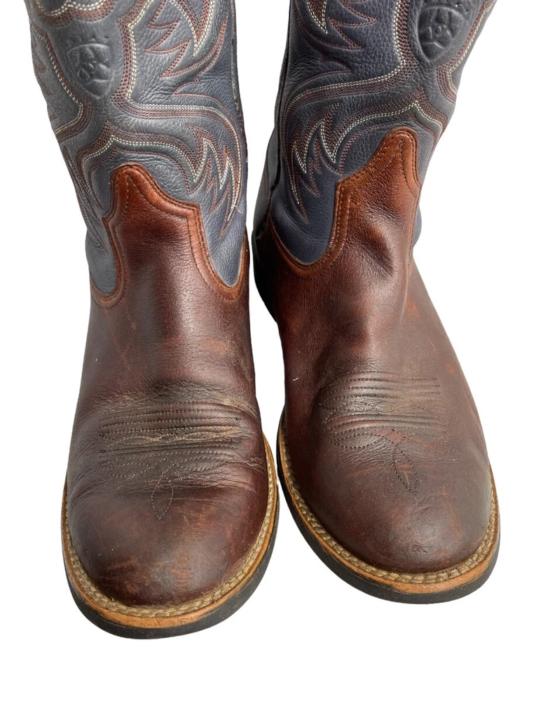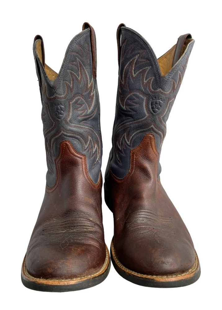 Ariat Horseman 33972 Blue Brown Embroidered Leather Western Boots Men's 10.5 D