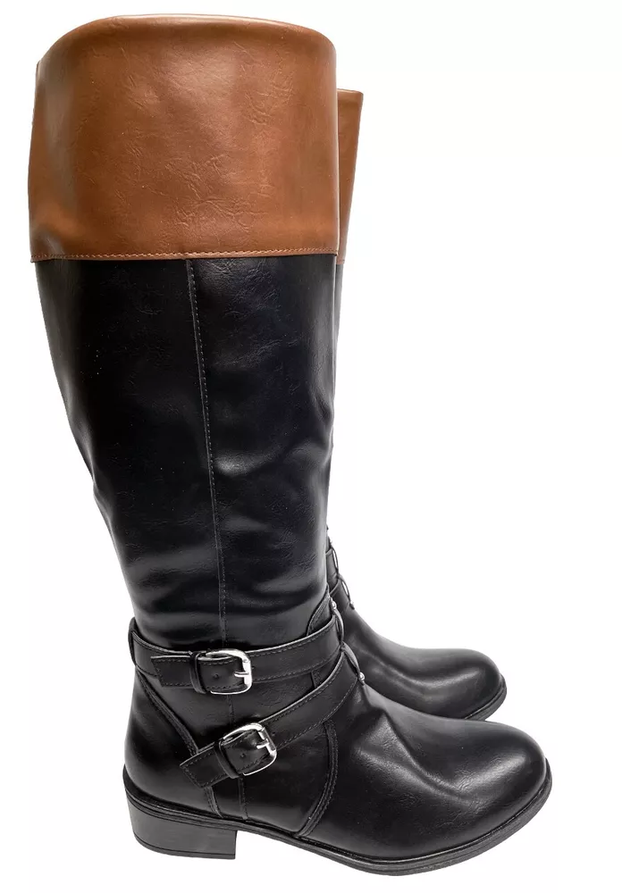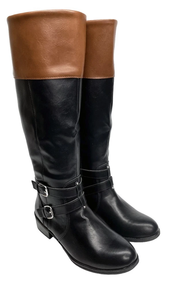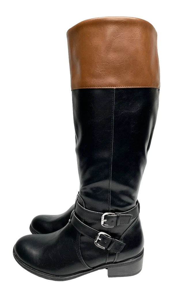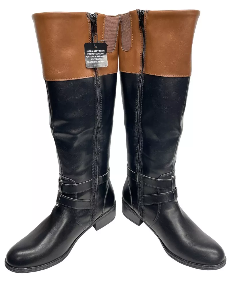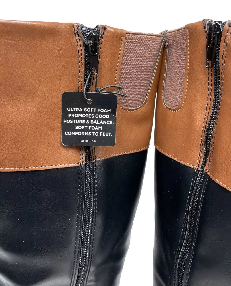 Arizona Denver Black Brown Faux Leather Memory Foam Tall Boots Women's 7.5 M NEW