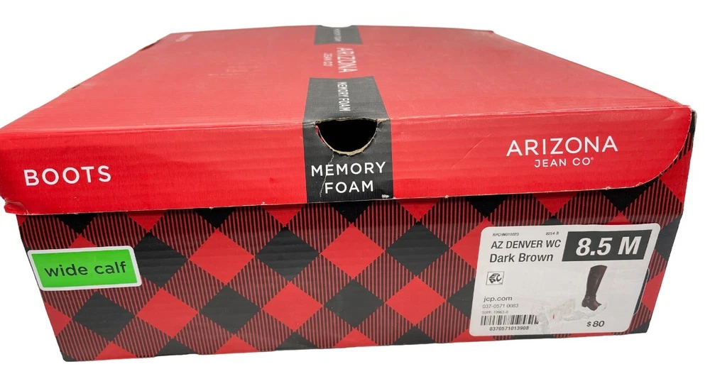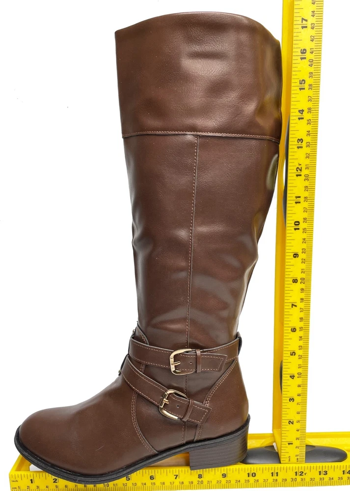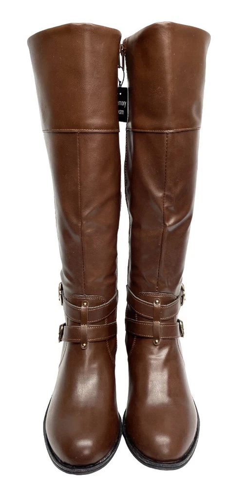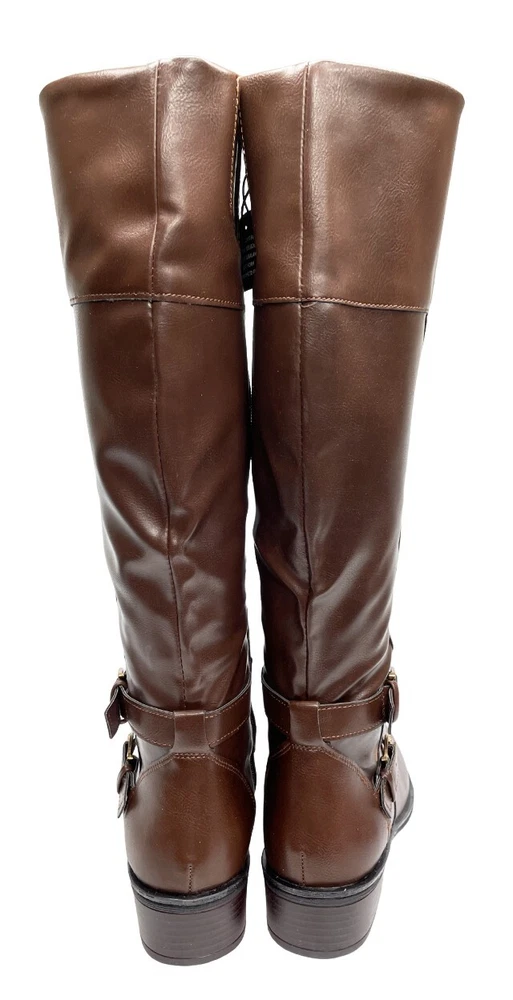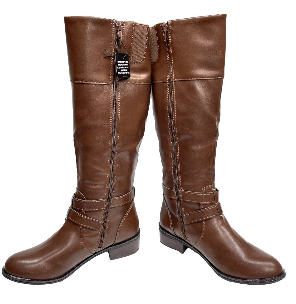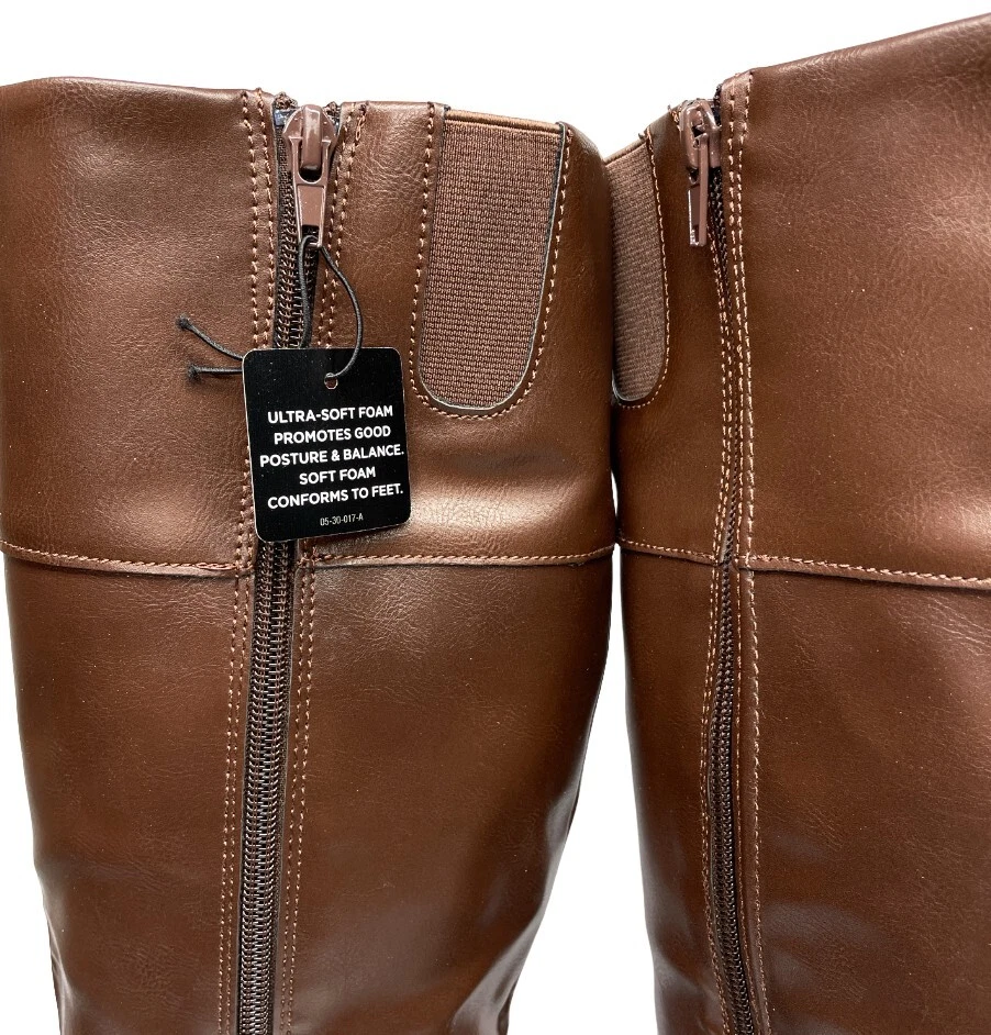 Features: Comfort, Lightweight, Memory Foam Calf Width: Wide Shoe Width: M Pattern: Solid Style: Riding Boot Model: Denver Occasion: Business, Casual, Party/Cocktail, Travel, Workwear Accents: Buckle Character: Boots Closure: Zip Department: Women Color: Brown Toe Shape: Round Toe Upper Material: Faux Leather US Shoe Size: 8.5 Heel Style: Block Theme: American, Equestrian, Modern Brand: Arizona Jean Co Type: Boot Shoe Shaft Style: Knee High Heel Height: Low (1-1.9 in)