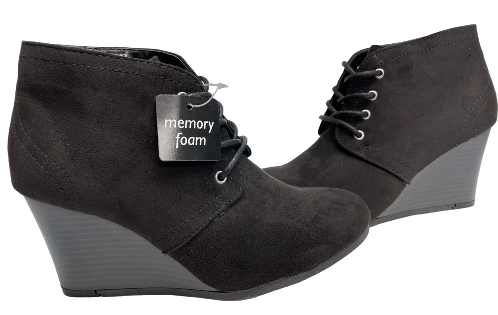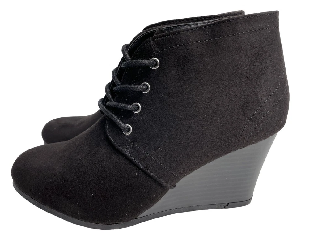 Arizona Lawrence Black Faux Leather Wedge Wedgie Bootie Boots Women's 8.5 M NEW