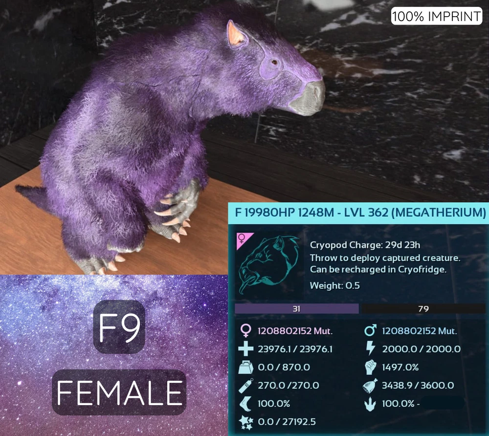 Ark Ascended Official Server PVE PS5 XBOX PC MEGATHERIUM TOP STATUS 1248M