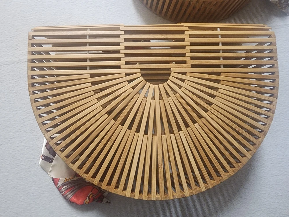 This beautiful pair of Ark bags with scarfs is a great deal for any fashion-forward woman. The exterior color is a natural bamboo color that adds a touch of elegance to your outfit. These bags are perfect for any occasion and can easily complement your wardrobe. Crafted from high-quality materials, these bags are durable and long-lasting. They are perfect for carrying your essentials and can easily fit your phone, wallet, and makeup. With their unique design and exquisite detailing, these bags are sure to turn heads wherever you go. Like New Bamboo Ark Bags W/ Scarfs Beautiful Pair Great Condition Great Deal obo Larger one is 13 inches wide 9 1/2 inches wide 4 inches across Smaller one is 11 1/2 wide 8 inches tall and 3 inches across Thanks and check my other listings for more Great Purses and Great Vintage items Thanks Please see Pictures for condition is LIKE New condition Very Nice Please See Pictures Thanks . Please see My Other Auctions For More Great Vintage items Thanks
