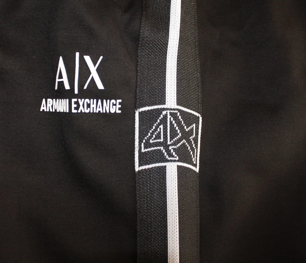 BNWT ARMANI EXCHANGE MEN TRACKSUIT SET INCLUDE TOP AND BOTTOMS BLACK COLOR WITH WHITE LOGO AND SIDE STRIPE FULL ZIP SWEATER WITH POCKETS REGULAR SIZE SHIP SAME OR NEXT WORK DAY FULL TRACKING SERVICE FAST SHIPPING TO USA 7-12 WORK DAYS FOR DELIVERY