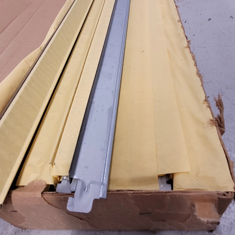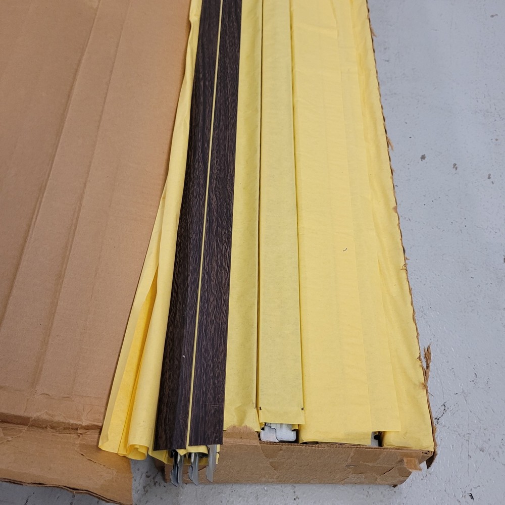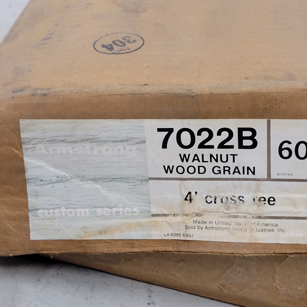 Vintage Armstrong 7022B Walnut Wood Grain 4' Drop Ceiling Cross Tee Box Of 60 Pieces Four Foot Feet Used see photos. Open box, never been installed. They have some blemishes on them since they've been sitting so long. Some small scratches and rust spots. Old stock SJ