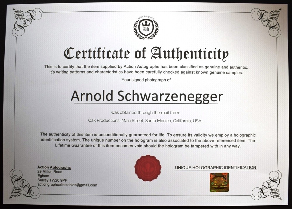 ARNOLD SCHWARZENEGGER, ORIGINAL 8"X10" SIGNED PHOTO, COA AUTHORIZED DEALER One the Best of the Best signed Photo !!!