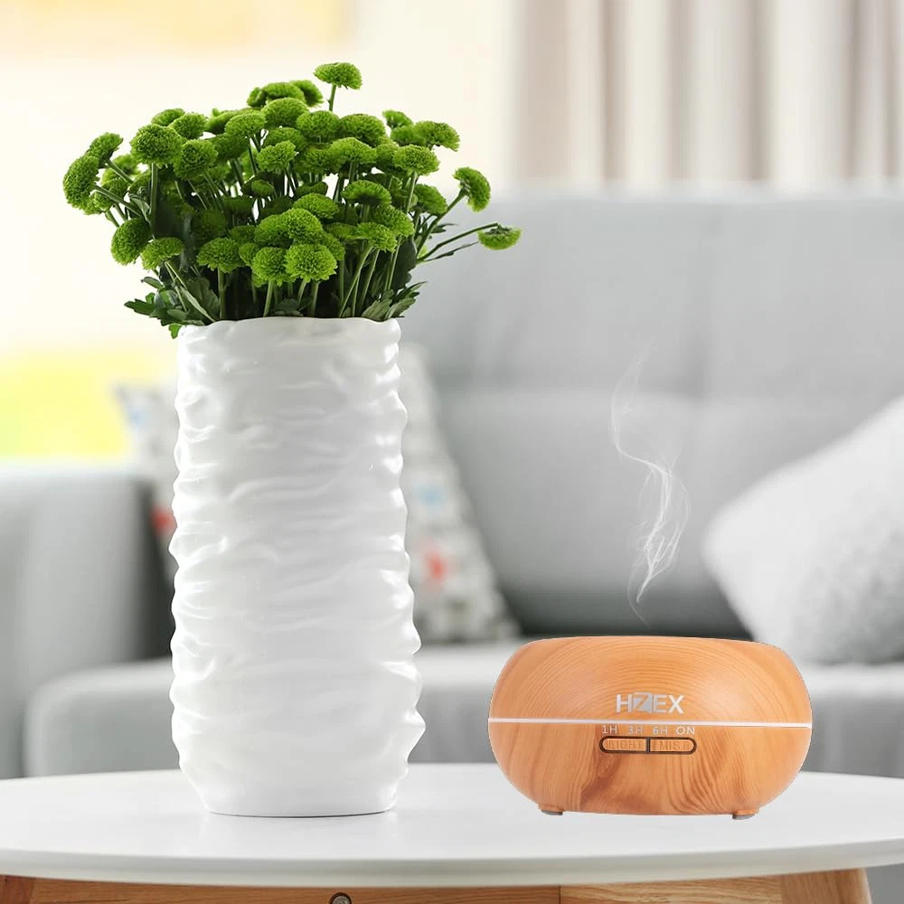 Modern Woodgrain Design: The elegant shallow footprint is beautifully brought to life with RGB lighting, creating a serene and calming atmosphere in any room. The compact design fits perfectly on any tabletop and can be easily moved from room to room. Remote Control: The diffuser comes with a convenient remote control that allows you to easily adjust the mist intensity, set a timer, and turn the lights on and off. The remote has a range of up to 32 feet, making it easy to control the diffuser from across the room. Essential Oil Compatibility: The diffuser is compatible with all types of essential oils, allowing you to customize your aromatherapy experience. Simply add a few drops of your favorite oil to the water and enjoy the therapeutic benefits. Mist Control: The diffuser has three mist modes to choose from: low, medium, and high. You can also adjust the mist intensity to suit your preferences. The mist output is whisper-quiet, making it ideal for use in bedrooms or offices. Timer Settings: The diffuser has a timer setting that can be set for 1, 2, 3, or 4 hours. It will automatically shut off once the selected time is up, ensuring that your home remains safe and secure.