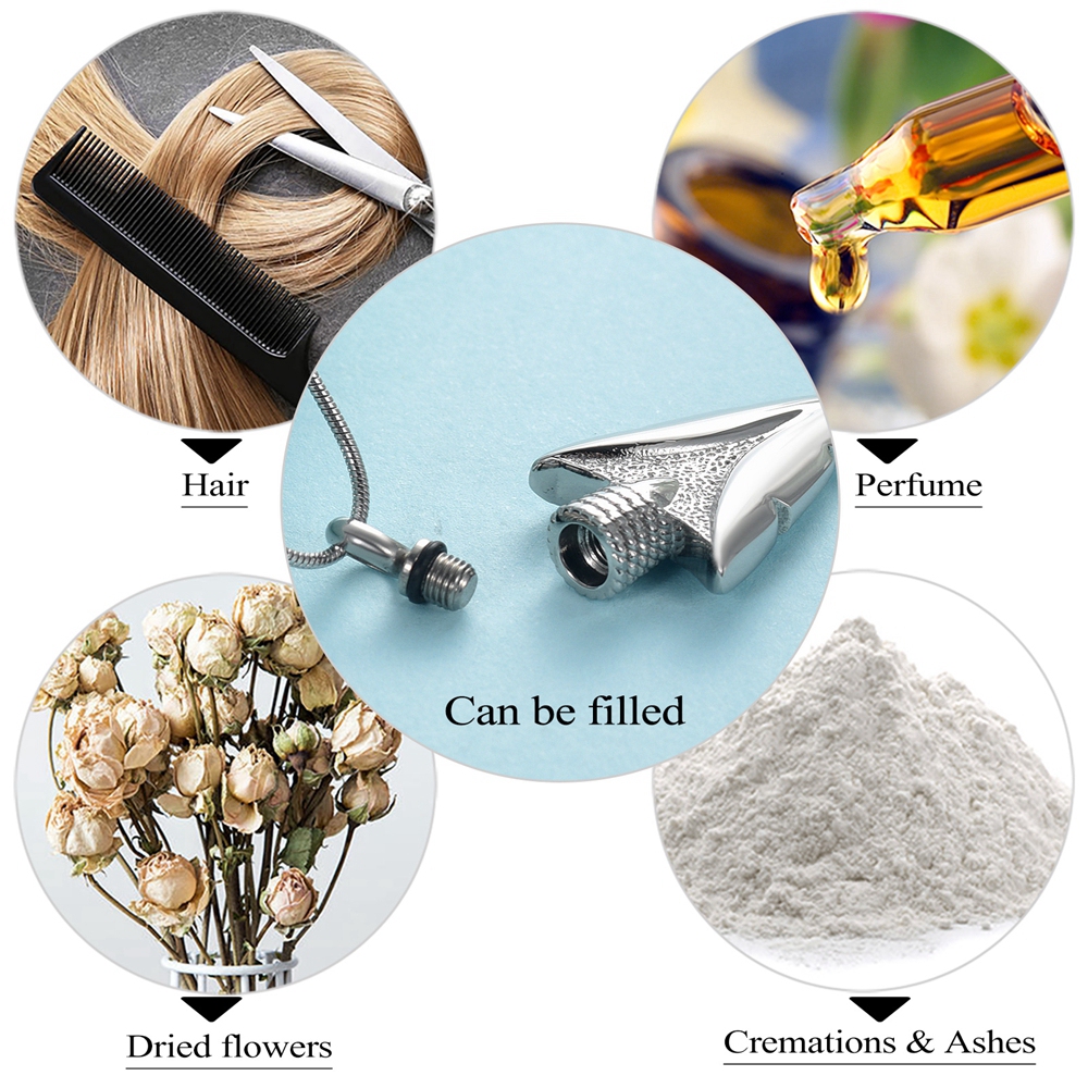 Product Description Hearbeingt Cremation Jewelry How do you capture the inspiration of a lifetime? It can be a formidable task. Yet that is the task faced by family and loved ones during their time of loss--to find a way to honor a life well lived with a dignified and appropriate memorial. Hearbeingt keepsake Necklace make you can keep your memories always near in your heart! You can place a pinch of ashes in the Necklace and keep them with you, everywhere! This Urn Necklace for Ashes Made of medical grade 316 L stainless steel, it is shiny, does not fade, will never rust, corrode or change color; screws and rubber washers can ensure a tight seal to prevent the ashes from falling.It can have two collocations, you can choose high quality rope or high quality 361L stainless steel chain. Cremation Jewelry Quality Made of High-Quality 316L Stainless Steel ,This memorial pendant is fadeless, no tarnish, hypoallergenic, waterproof and high polished; Kinds of plating colors can be chosen. Hand crafted Keepsake jewelry is used as a remarkable way to memorialize a loved one.Can keep your loved one with you together,bring you comfort.Handmade musical instruments necklaces, Cremation Jewelry, commemorative jewelry, casket necklaces, or ashes jewelry are used as a great way to honor loved ones. Mini Charm Keepsake Necklace Suitable for All Ages High-quality adjustable nylon cord for more comfortable wearing experience for both men, women, and children.The cremation necklace is designed to hold urn ashes for pets, a small amount of a loved one ashes, soil, special messages, hair, perfume, etc. Hearbeingt keepsake pendant make you can keep your memories always near in your heart! -You can place a pinch of ashes in the pendant and keep them with you, everywhere! -A bit of soil from your home town, your country or from a place you traveled to and you want it to stay with you forever! -A loving memory that it is worth staying always by your heart! -Your favorite fragrance which will carry you so many memories! -Can be hung in car back mirror so that you can be with your loved one wherever you go. Product Main Features: Material: High-quality 316L stainless steel Chain Length: 20''+2''(Selectable) Package: Including a urn necklace, a gift box, a funnel, screwdriver, and an instruction manual. Service Pls contact us if you are not satisfied with the product when you received it, we will solve it.
