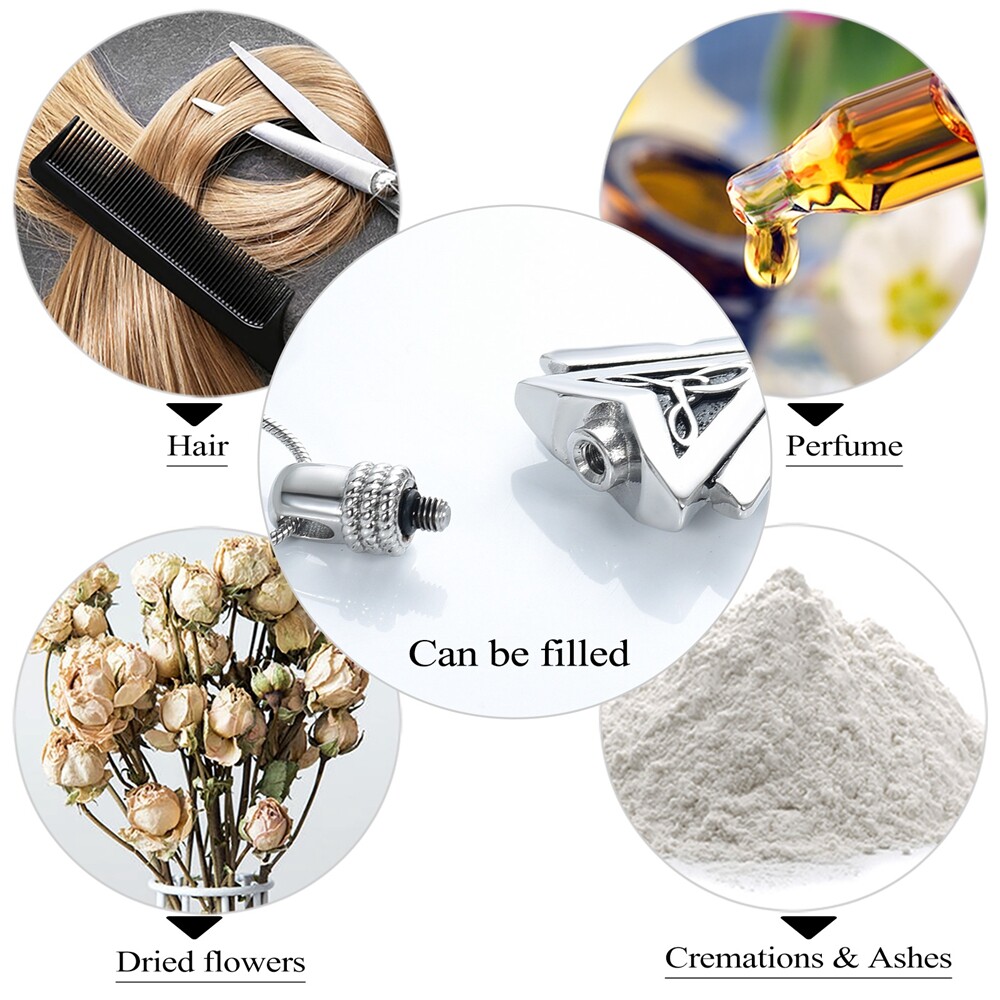 Product Description Hearbeingt Cremation Jewelry How do you capture the inspiration of a lifetime? It can be a formidable task. Yet that is the task faced by family and loved ones during their time of loss--to find a way to honor a life well lived with a dignified and appropriate memorial. Hearbeingt keepsake Necklace make you can keep your memories always near in your heart! You can place a pinch of ashes in the Necklace and keep them with you, everywhere! This Urn Necklace for Ashes Made of medical grade 316 L stainless steel, it is shiny, does not fade, will never rust, corrode or change color; screws and rubber washers can ensure a tight seal to prevent the ashes from falling.It can have two collocations, you can choose high quality rope or high quality 361L stainless steel chain. Cremation Jewelry Quality Made of High-Quality 316L Stainless Steel ,This memorial pendant is fadeless, no tarnish, hypoallergenic, waterproof and high polished; Kinds of plating colors can be chosen. Hand crafted Keepsake jewelry is used as a remarkable way to memorialize a loved one.Can keep your loved one with you together,bring you comfort.Handmade musical instruments necklaces, Cremation Jewelry, commemorative jewelry, casket necklaces, or ashes jewelry are used as a great way to honor loved ones. Mini Charm Keepsake Necklace Suitable for All Ages High-quality adjustable nylon cord for more comfortable wearing experience for both men, women, and children.The cremation necklace is designed to hold urn ashes for pets, a small amount of a loved one ashes, soil, special messages, hair, perfume, etc. Hearbeingt keepsake pendant make you can keep your memories always near in your heart! -You can place a pinch of ashes in the pendant and keep them with you, everywhere! -A bit of soil from your home town, your country or from a place you traveled to and you want it to stay with you forever! -A loving memory that it is worth staying always by your heart! -Your favorite fragrance which will carry you so many memories! -Can be hung in car back mirror so that you can be with your loved one wherever you go. Product Main Features: Material: High-quality 316L stainless steel Chain Length: 20''+2''(Selectable) Package: Including a urn necklace, a gift box, a funnel, screwdriver, and an instruction manual. Service Pls contact us if you are not satisfied with the product when you received it, we will solve it.