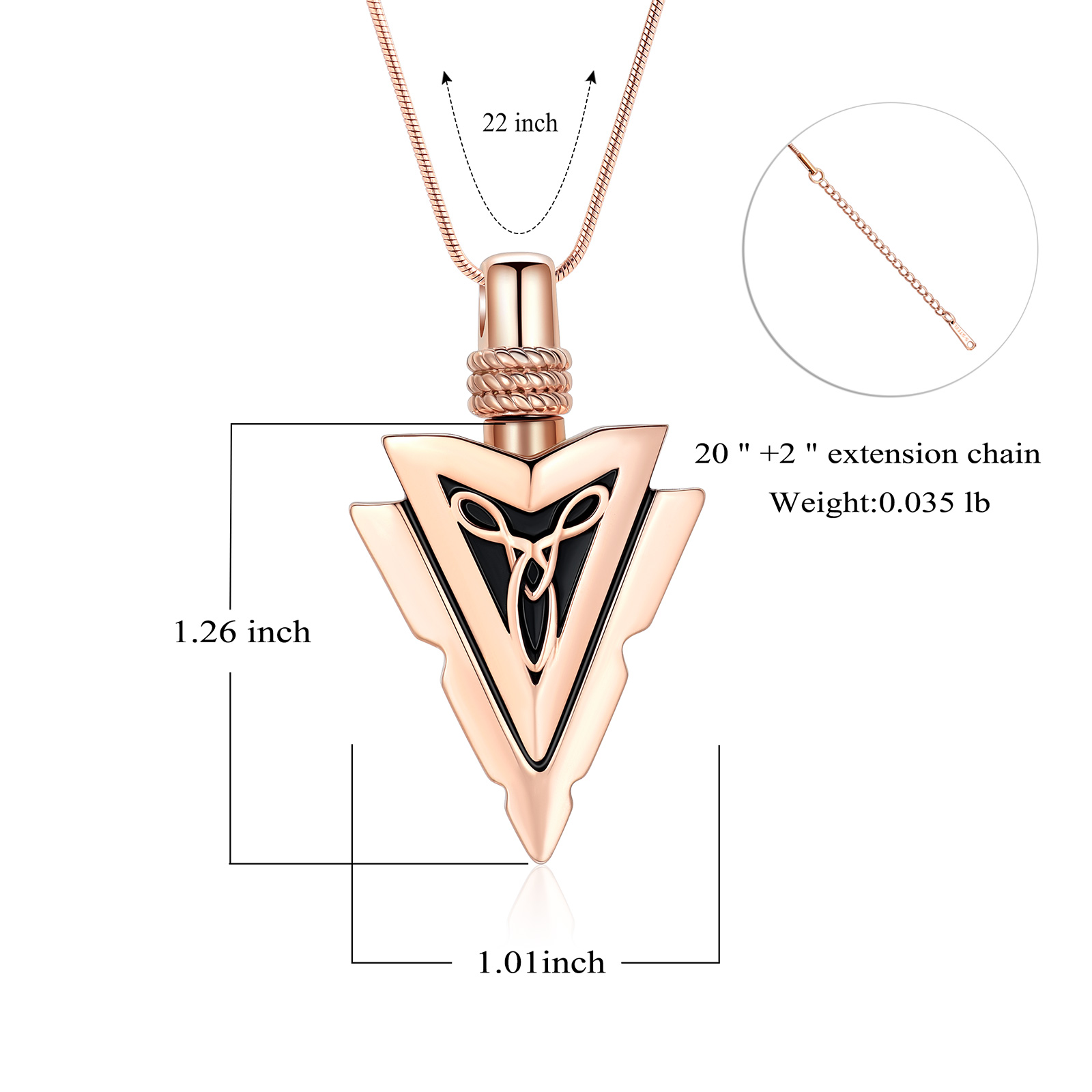 Arrowhead Urn Necklace for Ashes Memorial Keepsake Cremation Jewelry