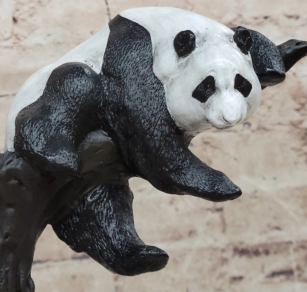 Art Deco Sun Bating Black & White Panda Animal Bronze Sculpture Decorative Gift Art Deco Sun Bating Black & White Panda Animal Bronze Sculpture Decorative Gift Condition : This sculpture is in a perfect condition. Bronze Dimensions with Marble Base: Height 10" X Width 6" Marble Dimensions:4" X 4" Height without base:6" Weight:9 LBS Inventory:12AL3024229 Bring the charm of nature into your home with this beautifully crafted bronze sculpture of a panda gently perched on a tree branch. The artist captures the panda’s peaceful demeanor and playful curiosity with lifelike precision, from the gentle tilt of its head to the natural drape of its limbs over the wood. The branch's texture is intricately detailed, complementing the panda's soft contours and rounded form. This charming piece is mounted on a richly veined black marble base, adding elegance and weight to the composition. The contrast between the dark bronze patina and the polished stone enhances the sculpture’s visual appeal, making it a standout addition to any décor. Whether displayed on a mantel, bookshelf, or office desk, it brings warmth and character to the space. Handmade using the traditional lost wax method, this sculpture is a celebration of craftsmanship and artistry. Signed by renowned artist Milo, it is an ideal gift for wildlife lovers or collectors seeking a graceful, meaningful piece that captures the serene beauty of the natural world. Panda Bear Mother Bookend Book End"Pride Joy" Bronze Sculpture Figurine Decor Video will open in a new window Using the eBay App? Paste link into a browser window: [isdntekvideo] Shipping Terms : Most of our items are shipped via USPS (United States Postal Service) mail or UPS. Most orders are shipped within 24-48 hours of purchase. Please be aware that not all items are available for USPS shipping due to size and weight. We do ship to Hawaii, Alaska, Canada, Puerto Rico, APO/AE, and U.S. Virgin Islands, however, an additional charge may be required. Please contact us before making any purchases in these areas. For Non-USA customers, you may be responsible for all duty, tax, brokerage fees that may be due upon delivery (shipping costs cover freight charges only). We also ship internationally. Please refer to the "Shipping and Handling" chart for the rates for each area. Payment : We accept just about any form of payment. PayPal, Master Card, Visa or American Express credit cards. Money orders, cashiers checks, and even personal or business checks. For governmental institutions, we will also accept a purchase order. Please understand that for personal or business checks we have to wait for the check to clear (usually 7 days) before shipping. Condition : New Detailed Hand Crafted Hot Cast Bronze Satisfaction Guaranteed. This is Stock Photo, Slight Color Variation!! Listing and template services provided by inkFrog