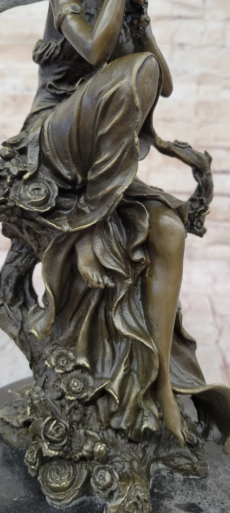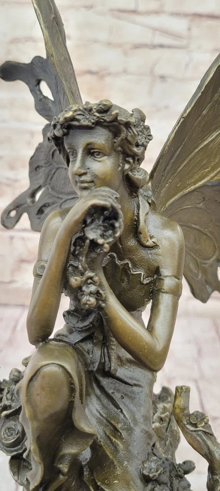 Condition : This sculpture is in perfect condition. Bronze Dimensions with Marble Base: Height 15" X Width 7.5" Marble Dimensions: Diameter 7.5" Height without base:14" Weight:14 LBS Inventory:21YDZ0828512 Embark on a journey of enchantment and celestial bravery with the mesmerizing sculpture titled "An Fairy Flies from Heaven." From the celestial realms, this ethereal being descends, a harbinger of hope and a defender against the shadows that seek to engulf our world. With a divine purpose, she dons a flowing robe and graceful sandals, her wings outstretched as if in a radiant proclamation. Her presence resonates with the very essence of salvation. Captured in intricate detail, the sculpture embodies a sense of mystical vigor. Crafted through the revered "lost wax method," the sculpture boasts a captivating brown patina that captures the play of light and shadow, further emphasizing the celestial nature of the fairy's mission. Poised atop a black marble base, her form stands as a testament to the delicate balance between realms, and the intricate nuances of her features unveil the artist's devotion to his craft. Artist Cesaro's signature graces the sculpture, affirming its authenticity and the mastery that has gone into its creation. With wings extended and a message of hope carried in her aura, "A Fairy Flies from Heaven" is not merely a sculpture; it's a bridge between worlds, a symbol of unwavering light in the face of darkness. Let this masterpiece grace your space, inspiring a sense of wonder and courage that knows no bounds. Signed Original Sexy Fairy with Wing Bronze Art Nouveau Sculpture Figurine Decor Video will open in a new window Using the eBay App? Paste link into a browser window: [isdntekvideo]