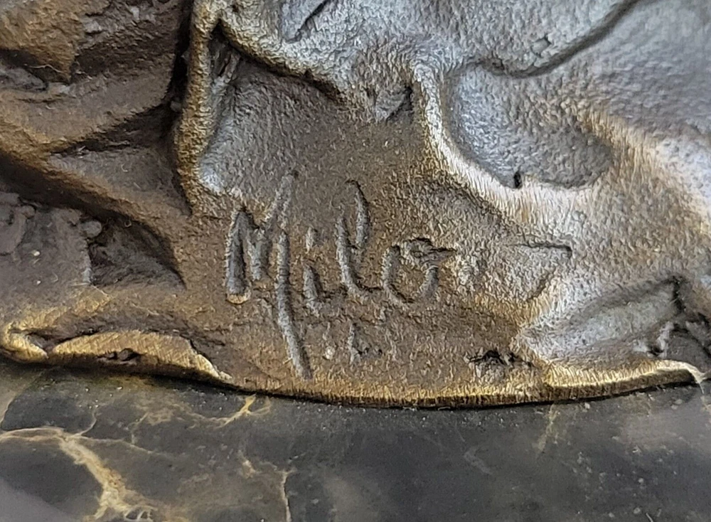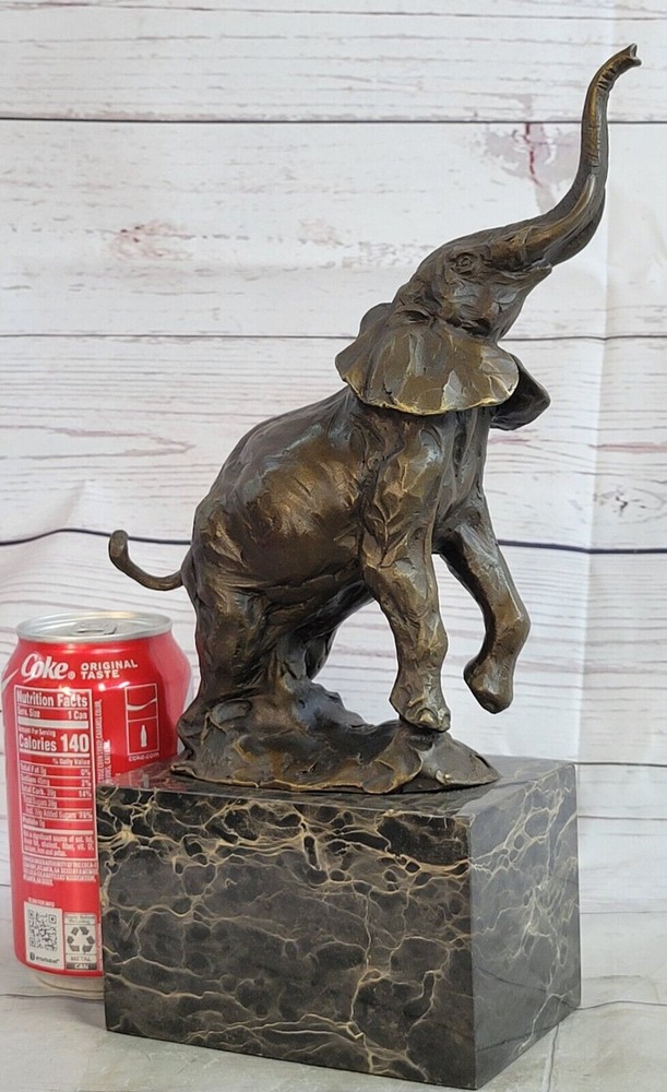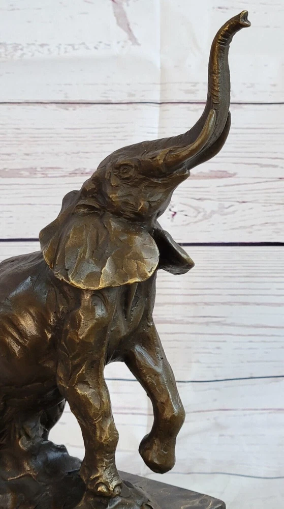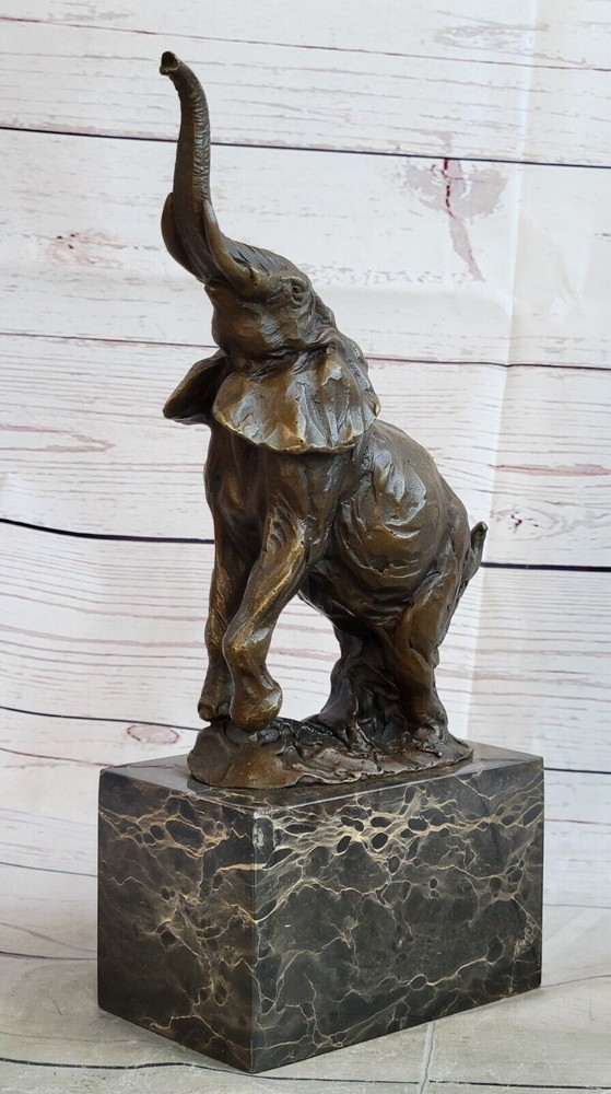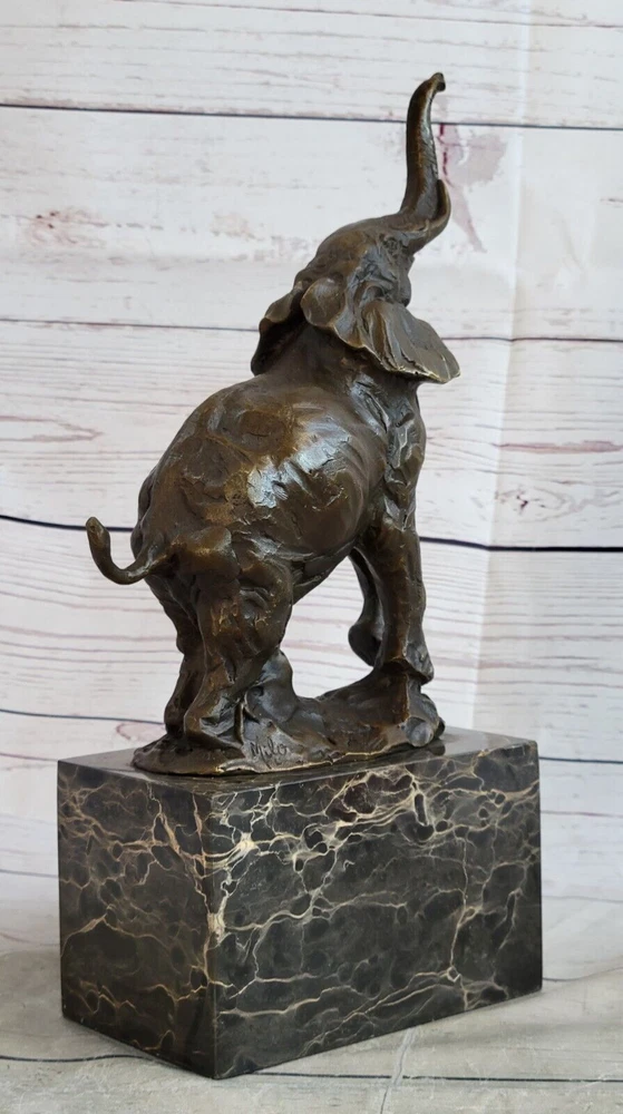 Art Deco Wildlife Elephant by Milo Bronze Hot Cast Sculpture Statue Artwork Deco Art Deco Wildlife Elephant by Milo Bronze Hot Cast Sculpture Statue Artwork Deco Condition : This sculpture is in perfect condition Bronze Dimensions with Marble Base: Height 12" X Width 10" Marble Dimensions:5" X 3" Height without base:9" Weight10 LBS Inventory:53K2734335 Immerse yourself in the mesmerizing presence of the bronze elephant sculpture, a piece that captures the essence of this majestic creature's slow and graceful journey across an arid plain. With its trunk gently arched upwards and outwards, the elephant portrays a tranquil demeanor as it moves, reflecting the serene nature of its gaze. Throughout history, elephants have held sacred significance, representing strength and wisdom across different cultures. In Eastern cultures, they embody patience and energy, while in Hinduism, the deity Ganesha with an elephant's head symbolizes intellect and spirituality. Crafted using the timeless technique of lost-wax casting, this bronze sculpture exudes authenticity and detail in every curve and contour. The brown patina finish further enhances the sculpture's rich and enduring character, adding to its visual appeal. Mounted upon a variegated brown marble base, the elephant stands as a symbol of power and grace, ready to bring a touch of the wild and the sacred to any environment it graces. Artist Milo's signature ensures the sculpture's authenticity, making it a remarkable addition to any collection or a thoughtful gift that carries the profound symbolism of the elephant's presence. Bronze Sculpture Hand Made Statue Art Nouveau Signed Milo Abstract Elephant Video will open in a new window Using the eBay App? Paste link into a browser window: [isdntekvideo] Shipping Terms : Most of our items are shipped via USPS (United States Postal Service) mail or UPS. Most orders are shipped within 24-48 hours of purchase. Please be aware that not all items are available for USPS shipping due to size and weight. We do ship to Hawaii, Alaska, Canada, Puerto Rico, APO/AE, and U.S. Virgin Islands, however, an additional charge may be required. Please contact us before making any purchases in these areas. For Non-USA customers, you may be responsible for all duty, tax, brokerage fees that may be due upon delivery (shipping costs cover freight charges only). We also ship internationally. Please refer to the "Shipping and Handling" chart for the rates for each area. Payment : We accept just about any form of payment. PayPal, Master Card, Visa or American Express credit cards. Money orders, cashiers checks, and even personal or business checks. For governmental institutions, we will also accept a purchase order. Please understand that for personal or business checks we have to wait for the check to clear (usually 7 days) before shipping. Condition : New Detailed Hand Crafted Hot Cast Bronze Satisfaction Guaranteed. This is Stock Photo, Slight Color Variation!! Listing and template services provided by inkFrog