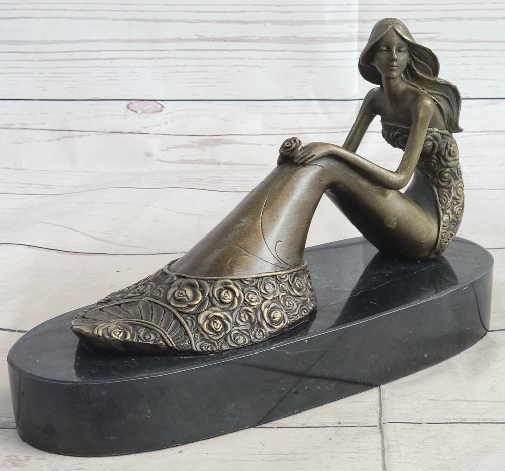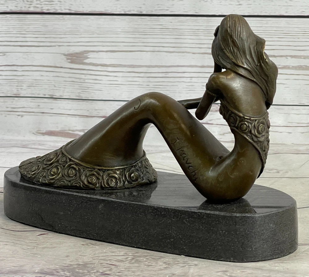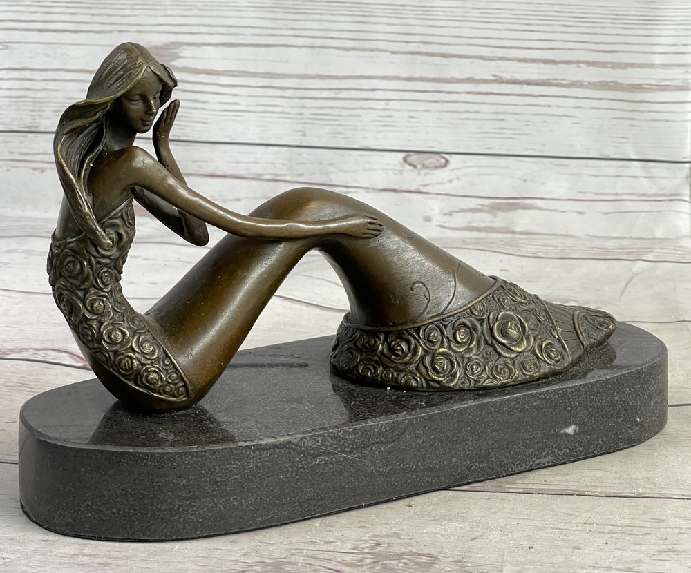 Art Deco Hot Cast Little Gorgeous Mermaid Bronze Sculpture Marble base Artwork Art Deco Hot Cast Little Gorgeous Mermaid Bronze Sculpture Marble base Artwork Condition : This sculpture is in perfect condition. Bronze Dimensions with Marble Base: Height 6" x Width 9.5" Marble Dimensions: Diameter 9.5" Height without base:5" Weight:6 LBS Inventory:21YRD12833912 This exquisite bronze sculpture captures the allure and mystery of a sensual mermaid, her form blending elegance and boldness. Expertly crafted, every detail highlights the artist's mastery, from the fluid curves of her body to the textured scales of her tail. Her enchanting pose exudes confidence and allure, making her a striking centerpiece for any collection. Created using the time-honored lost-wax casting method, this piece showcases the rich tradition of bronze artistry. The brown patina enhances the sculpture's depth, highlighting the intricate detailing, while the black marble base adds sophistication and stability. Signed by the artist Mavchi, this work is a testament to both craftsmanship and creativity. This sculpture makes a bold and captivating statement, ideal for art enthusiasts and collectors alike. Whether displayed in a home, gallery, or office, this mermaid embodies timeless beauty and an air of enchantment. Bronze Sculpture Mid Century Hot Cast Little Mermaid Christmas Xmas Gift Idea Video will open in a new window Using the eBay App? Paste link into a browser window: [isdntekvideo] Shipping Terms : Most of our items are shipped via USPS (United States Postal Service) mail or UPS. Most orders are shipped within 24-48 hours of purchase. Please be aware that not all items are available for USPS shipping due to size and weight. We do ship to Hawaii, Alaska, Canada, Puerto Rico, APO/AE, and U.S. Virgin Islands, however, an additional charge may be required. Please contact us before making any purchases in these areas. For Non-USA customers, you may be responsible for all duty, tax, brokerage fees that may be due upon delivery (shipping costs cover freight charges only). We also ship internationally. Please refer to the "Shipping and Handling" chart for the rates for each area. Payment : We accept just about any form of payment. PayPal, Master Card, Visa or American Express credit cards. Money orders, cashiers checks, and even personal or business checks. For governmental institutions, we will also accept a purchase order. Please understand that for personal or business checks we have to wait for the check to clear (usually 7 days) before shipping. Condition : New Detailed Hand Crafted Hot Cast Bronze Satisfaction Guaranteed. This is Stock Photo, Slight Color Variation!! Listing and template services provided by inkFrog
