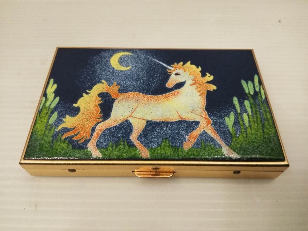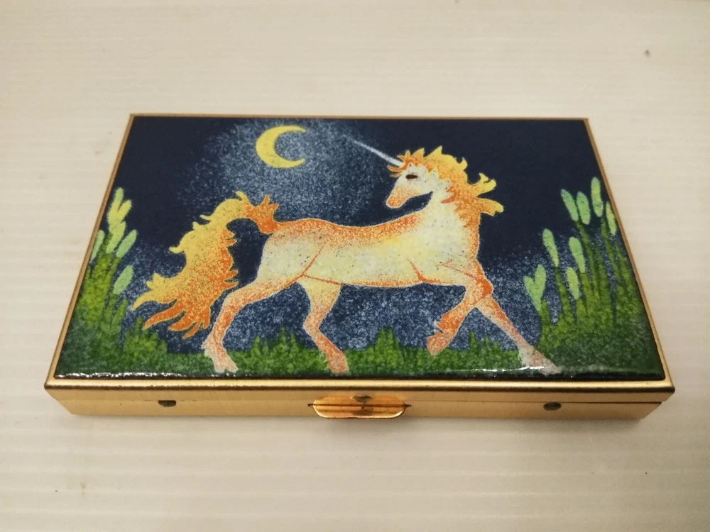 Credit Card / Business Card CASE Art Deco UNICORN MOON Enameled (3.5''x2'') NEW OLD STOCK EVER USED, CAN BE USED IN MANY WAYS, CIGARETTES, COINS, MEDS, ECT...