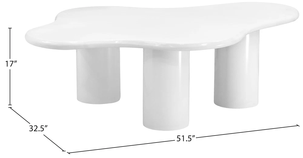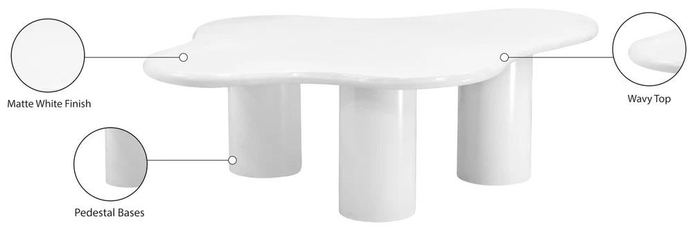 Overall Product Dimensions: 51.5" W x 32.5" D x 17" H White Finish Iron Metal Table Pedestal Bases Wavy Top