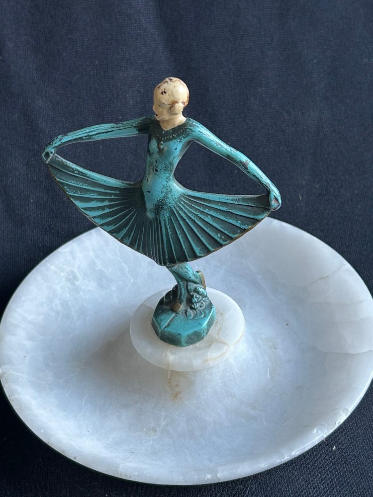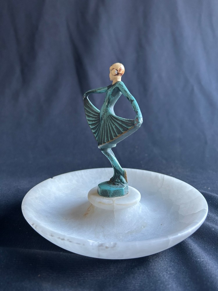 Item Height:6 inType:SculptureTime Period Produced:1920-1940Subject:WomenStyle:Art DecoTheme:Art, DanceMaterial:AlabasterSeller Notes:“Good, slight chipping on bowl (see photos)”Title:Art Deco Young Lady Alabaster CenterpiecePeriod:Art Deco (1920-1940)Unit of Sale:Single PieceSize:SmallFormat:StatueProduction Technique:Carving