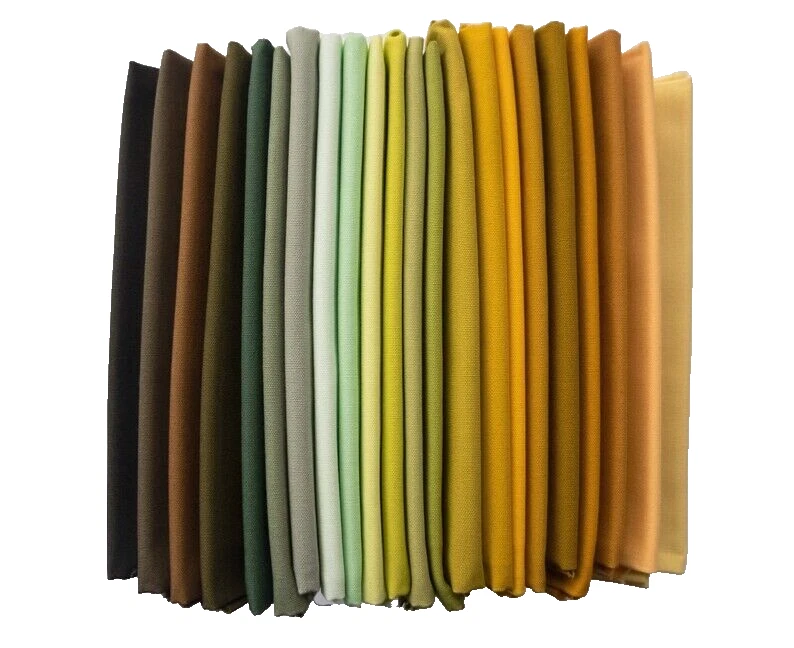 Art Gallery Fabrics AGF Pure Cotton Solids HALF YARD BUNDLE Sprouting 22 pcs - 11 YARDS TOTAL Each piece measures approximately 18"x44". Perfect condition, this is a brand new sealed bundle but I will need to open it up to properly fit it into a priority padded envelope to give you the best shipping price. Highest quality solid cotton you can buy. This Art Gallery Fabrics bundle is perfect for all your quilting needs. The bundle includes 22 pieces of pure cotton solids in beautiful spring garden colors, all in half yards. The fabric is suitable for a variety of crafts and quilting. The brand is known for its high-quality products and this bundle is no exception. Whether you're a seasoned quilter or just starting out, this bundle is a great addition to your collection. I'M HAPPY TO COMBINE SHIPPING FOR MULTIPLE WINS. SPROUTING Edition includes: PE-446 Honeydew, PE-435 Banana Cream, PE-421 Honey, PE-459 Turmeric, PE-483 Aurus, PE-484 Lemon Tart, PE-448 Canary, PE-407 Empire Yellow, PE-515 Olive Oil, PE-414 Dark Citron, PE-423 Appletini, PE-416 Lemonade, PE-409 Light Citron, PE-462 Pistachio Crème, PE-443 Sweet Mint, PE-50 Fresh Sage, PE-447 Patina Green, PE-503 Eucalyptus, PE-516 Garden Fern, PE-504 Golden Bronze, PE-468 Dried Moss, and PE-482 Forest Night Manufacturer: Art Gallery Designer: AGF Studio Collection: Pure Solids SKU: CB-PHY501 Precut Type: Half Yard Bundle - 18" x 44" Cuts