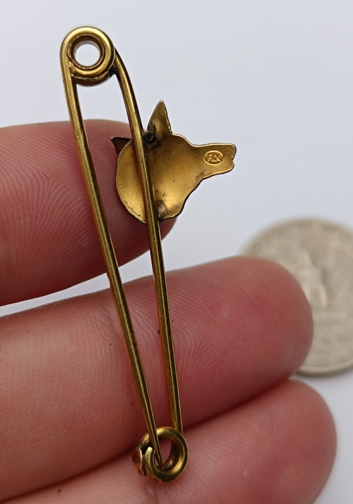 Elegant Art Nouveau era brooch in the shape of a large safety pin, adorned with a finely detailed dog's head. French origin, circa 1900. Gilded in FIX gold (doublé) — a high-quality gold plating technique used in French jewelry. Marked on the back. A charming antique accessory perfect for collectors or lovers of Belle Époque fashion. Approx. size: 5 x 1.3 cm Condition: Very good vintage condition, minor signs of age. Material: Gold-plated metal (FIX gilding) Origin: France art nouveau, FIX, gold plated, antique brooch, French jewelry, dog brooch, vintage pin, Belle Epoque, 1900s brooch, animal jewelry, collector piece, safety pin brooch, French FIX, dog head pin, canine brooch, Victorian jewelry, Edwardian pin, rare brooch, art nouveau pin, retro brooch, FIX France, antique safety pin, gold tone brooch, gilded pin, vintage gold, French dog brooch, gift for collector, animal lover gift, FIX mark, detailed brooch, hunting dog pin, fox brooch, jewelry France, brass pin, early 20th century, gilded brass, gift idea, stylish brooch, old French jewelry, costume brooch, golden dog, brooch art nouveau, dog head FIX, rare animal pin, gold animal brooch, small collectible, golden safety pin, lapel pin, vintage lapel brooch, FIX jewelry, brass brooch, collector’s pin, brooch France, dog jewelry, collectible dog pin, French pin, FIX hallmark, antique gold brooch, vintage accessory, fashion history, old jewelry, safety pin with dog, FIX art nouveau brooch, FIX gold plated, FIX safety pin, French safety pin, gilded antique, hunting theme, old pin France, brooch Belle Epoque, antique canine, golden pin France, FIX marked, brass FIX, fox head brooch, wolf brooch, FIX pin France, costume jewelry antique, stylish pin, dog collector brooch, French gold tone, gold overlay pin, FIX doublé, Paris jewelry, hunting brooch, fashion accessory, vintage wearable, wearable antique, fox hunting, animal brooch, French vintage pin, golden animal, gift brooch, unique pin, decorative pin, stylish vintage, elegant brooch
