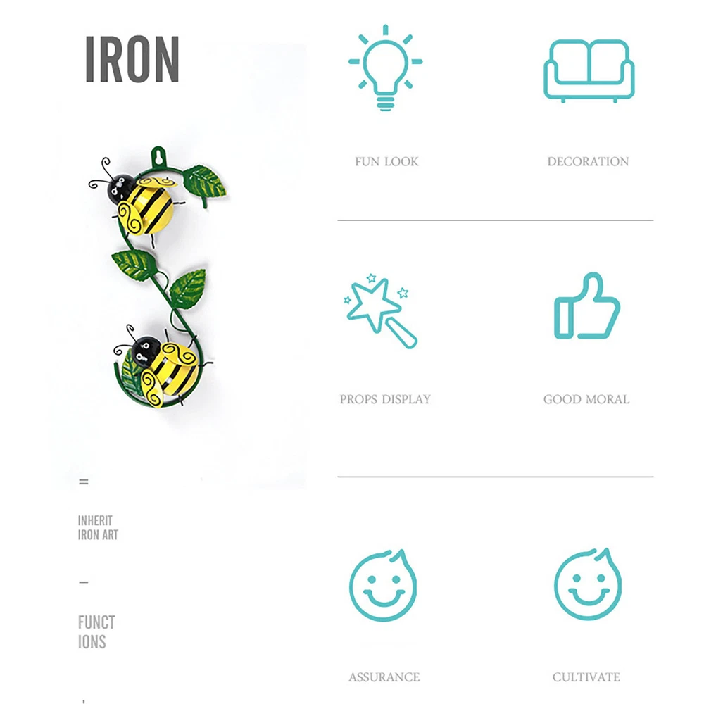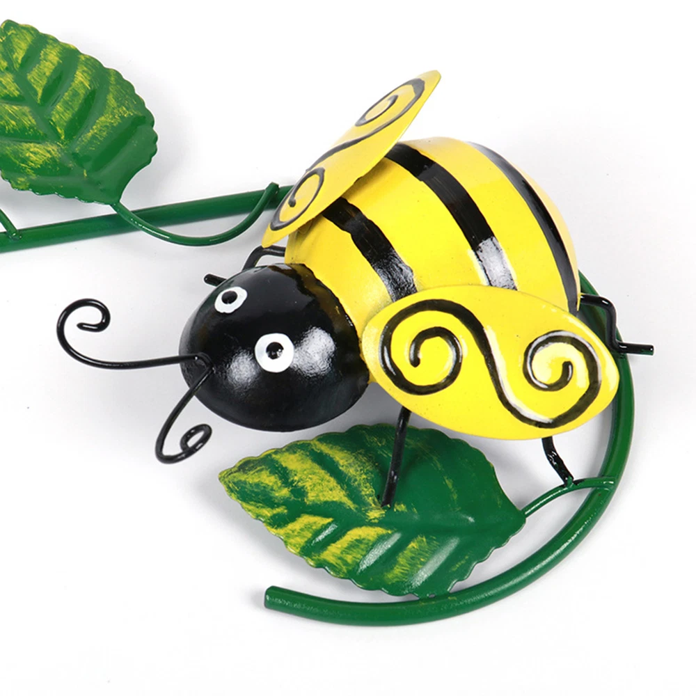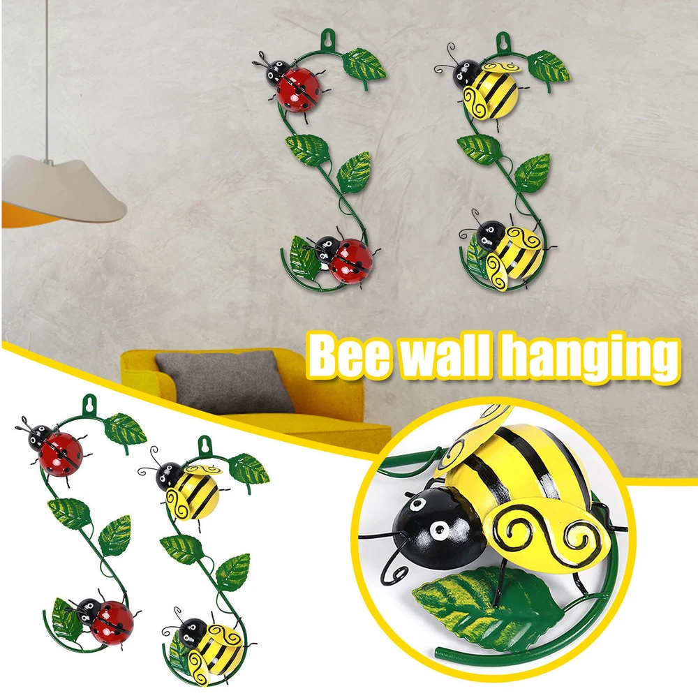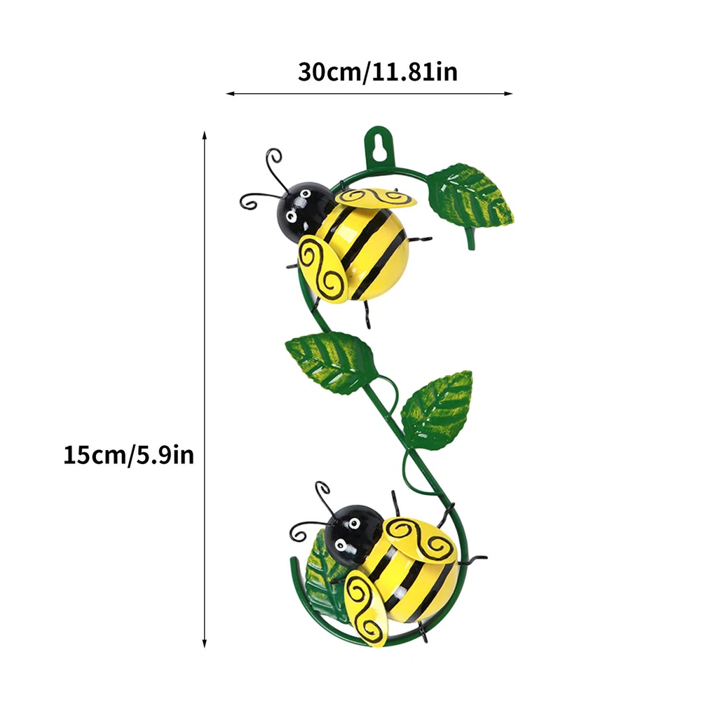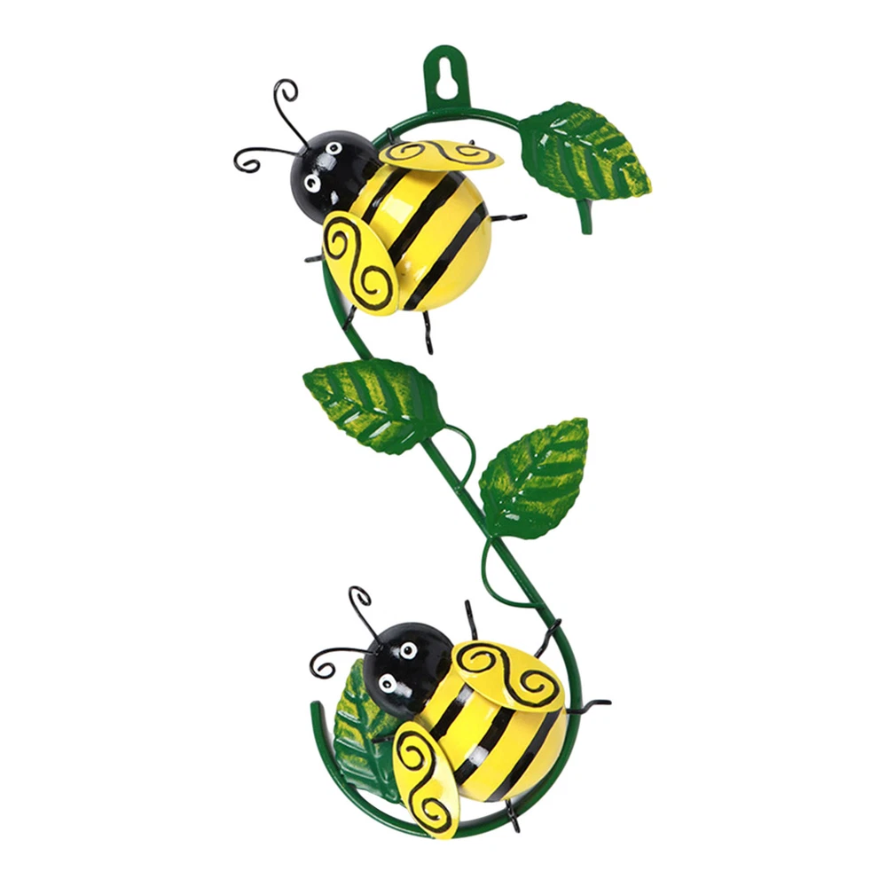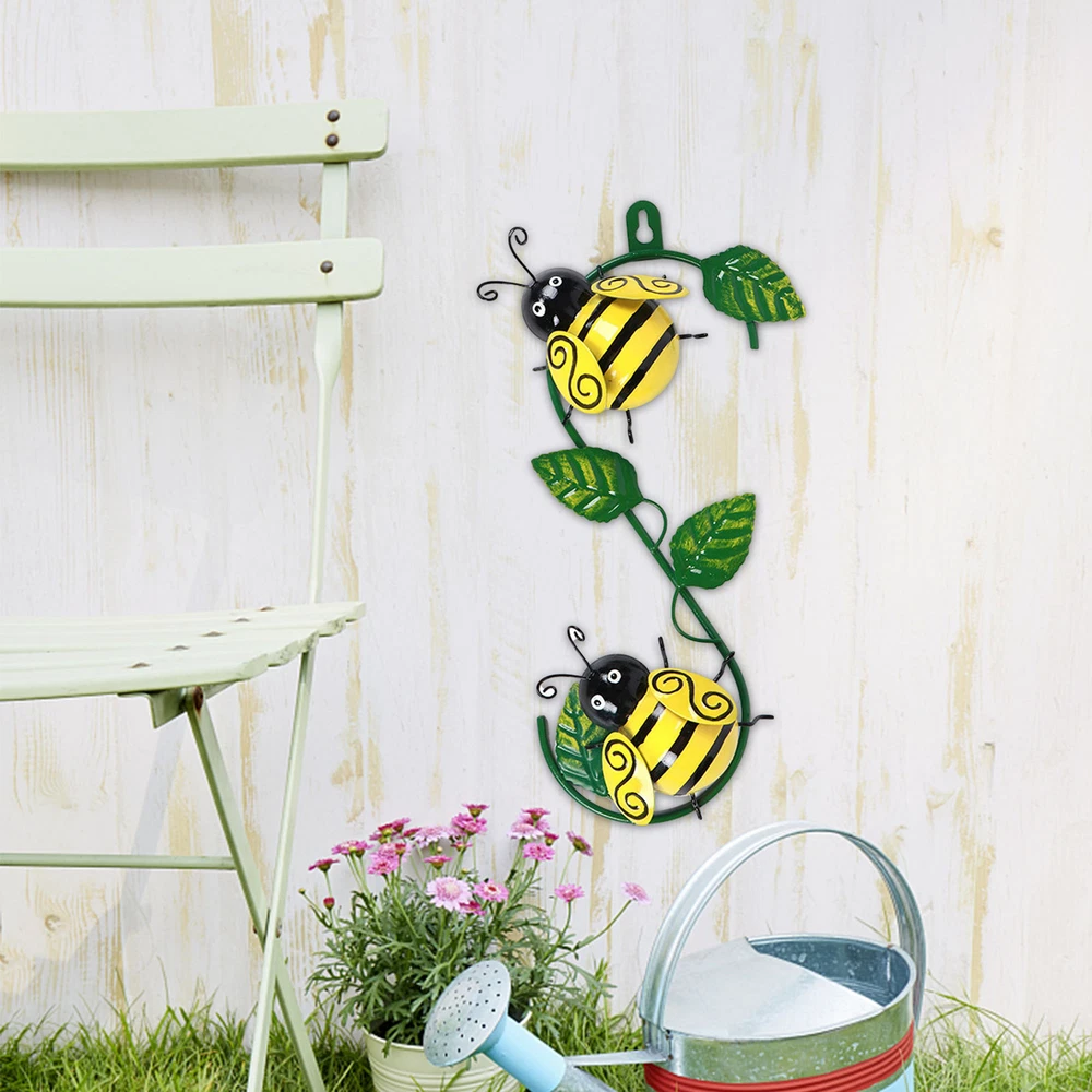 Arte de pared de metal hoja enredadera esculturas 3D abejas/damas decoración de pared colgante al aire libre