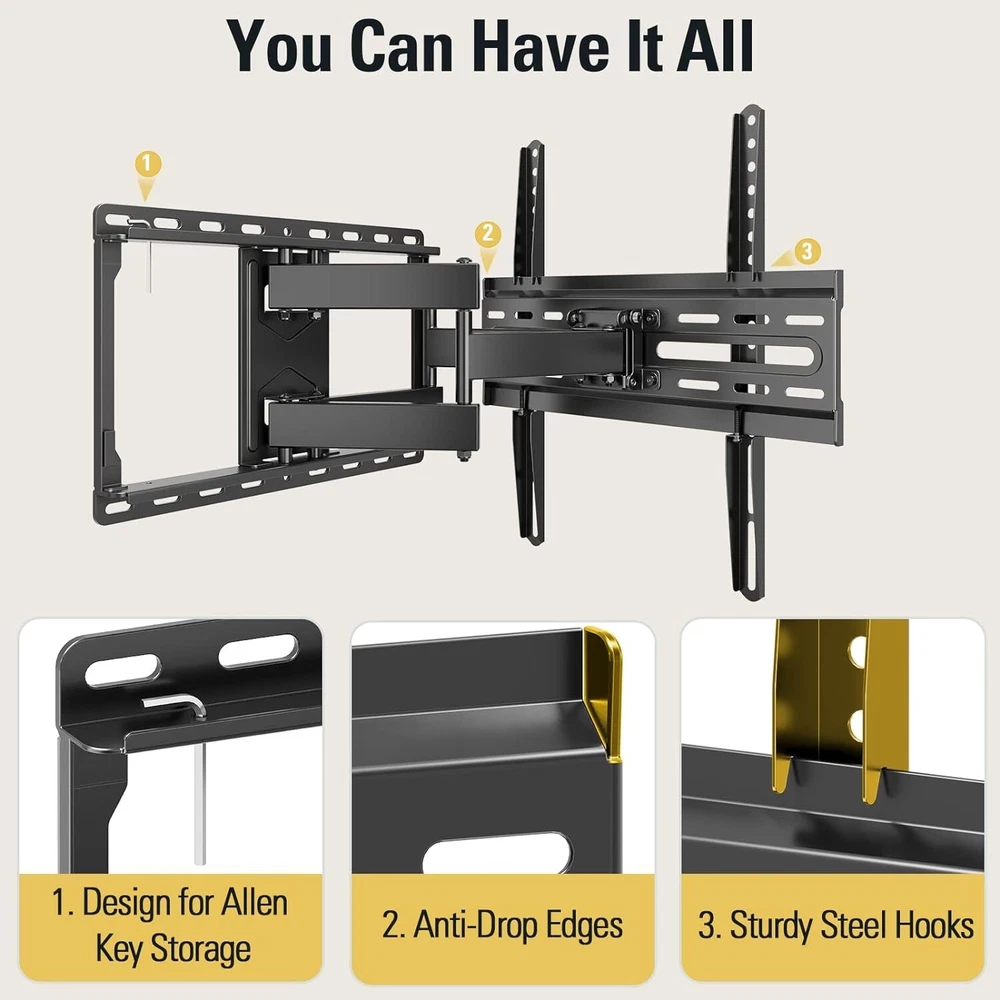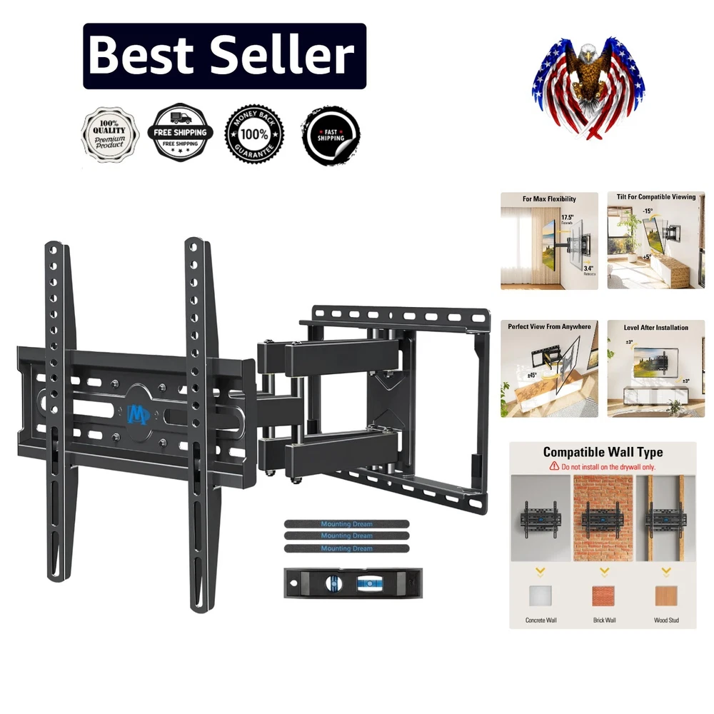 Articulating TV Mount for 32-65 Inch Screens - Easy Install with Swivel Action ‹ › ‹ › ‹ › ‹ › ‹ › ‹ › ‹ › ‹ › ‹ › ‹ › ‹ › Articulating TV Mount for 32-65 Inch Screens - Easy Install with Swivel Action - Universal TV Mount fits most 32-65" TVs up to 99 LBS - Max VESA of 400mm x 400mm/16" x 16" mounting holes spacing - Full motion TV mount tilts TV up 5° and down 15°, swivels left or right - Extends to 17.5" and retracts back to 3.4" for flexible viewing - Clear instructions and hardware labeled for easy installation - +/-3° post-installation adjustment for perfect TV leveling - Designed with 6 articulating arms for sturdy support - Robot welding technology ensures sturdiness and safety - US-based Customer Support for pre-purchase and installation assistance - Not suitable for drywall installation. Concrete Anchors available upon request Why choose our Articulating TV Mount? Elevate your TV viewing experience with our Articulating TV Mount designed for 32-65 inch screens. This versatile mount allows for easy installation with swivel action and a full range of motion to enhance your viewing angles. With sturdy construction and post-installation adjustment, this TV mount is both safe and convenient to use. Experience top-notch customer support and enjoy a hassle-free installation process. Upgrade your home entertainment setup with our premium Articulating TV Mount today! Shipping Free & Fast Shipping - We offer free shipping to most of the USA with a normal delivery time of 3-7 days. However, due to the current situation, additional delivery time (up to 3 weeks) may be required for some items. Alternative Carriers - We may use alternative carriers (e.g. USPS, FedEx, UPS, etc.) to ensure your package arrives safely and on time. Due to the use of multiple carriers, we are unable to provide a tracking number automatically. Handling Time - Orders are processed and shipped within 1-2 business days of receiving cleared payment. Shipping Restrictions - Shipping to Alaska, Hawaii, Puerto Rico, Guam, and other US territories may incur shipping charges or delivery restrictions. Please contact us before ordering, or your order can be refunded/cancelled. State Restrictions - There may be restrictions based on your state of purchase. For example, certain items may not be shipped to California due to state regulations. Contact for Tracking Updates - If you require tracking updates or have any concerns about the delivery of your order, please feel free to contact us, and we will be happy to assist you. Return 30-Day Hassle-Free Returns - We want you to be completely satisfied with your purchase. If you are not, you can return the item within 30 days of receiving it for a full refund or exchange. Easy Return Process - To start a return, simply contact us and we will provide you with a prepaid return shipping label and detailed instructions. Restocking Fee - There are no restocking fees for returns. However, the buyer is responsible for return shipping costs if the return is not due to a seller's error. Refund Processing Time - Refunds will be processed within 5 business days of receiving the returned item in its original condition. Payment We accept all major credit cards, PayPal, and Apple Pay for your convenience. Your payment information is secure and encrypted to ensure a safe and seamless transaction. Please complete your payment within 3 days of purchase to avoid any delays in shipping. Feedback Your feedback is extremely important to us. We strive to provide the best products and customer service possible. If you are satisfied with your purchase, please take a moment to leave us a positive review. If you have any concerns or issues with your order, please contact us before leaving negative feedback. We are committed to resolving any problems and ensuring your satisfaction. Contact Us If you have any questions or concerns, please feel free to reach out to our customer support team. You can contact us through the eBay messaging system. We are available Monday to Friday, 9:00 am to 5:00 pm EST, and we will do our best to respond to your inquiry within 24 hours. Thank you for supporting our small family business! Maximum Weight Fitment: 99 LBS Unit Quantity: 11.16 Year Manufactured: TV Wall Mount VESA Hole Pattern: TV Wall Mount Brand: Unbranded Type: Full Motion Maximum Screen Size Fitment: 65 in Features: Not Set MPN: Not Set Unit Type: lb Color: Black Manufacturer Warranty: Not Set