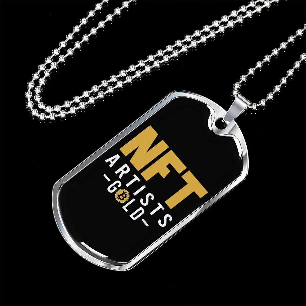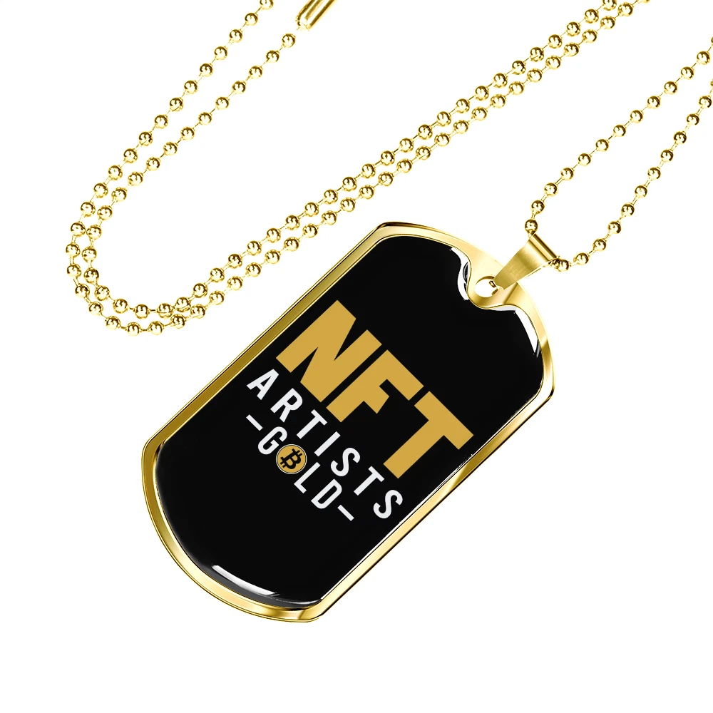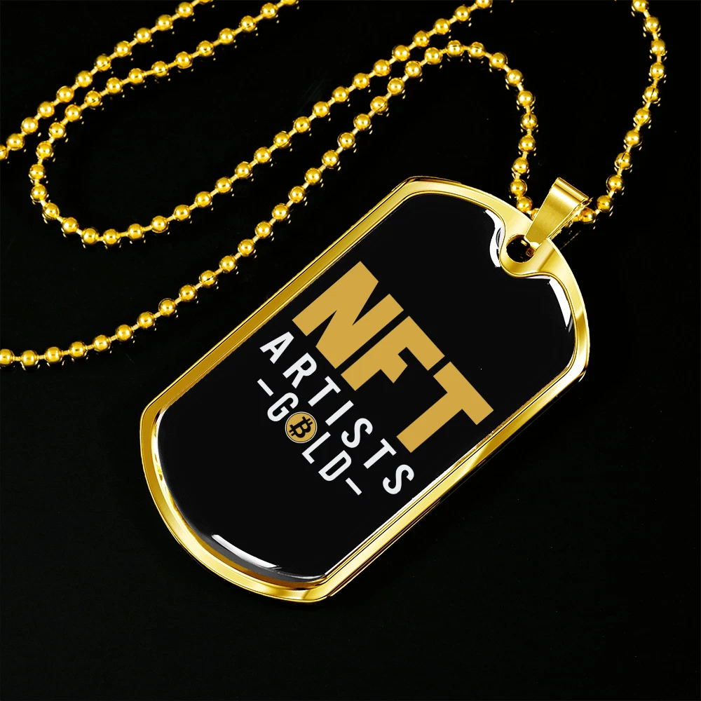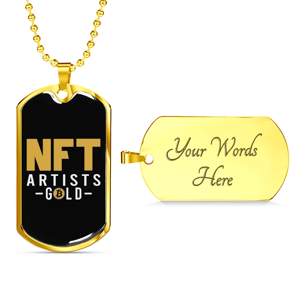 Artists Gold Necklace Stainless Steel or 18k Gold Dog Tag 24" Chain