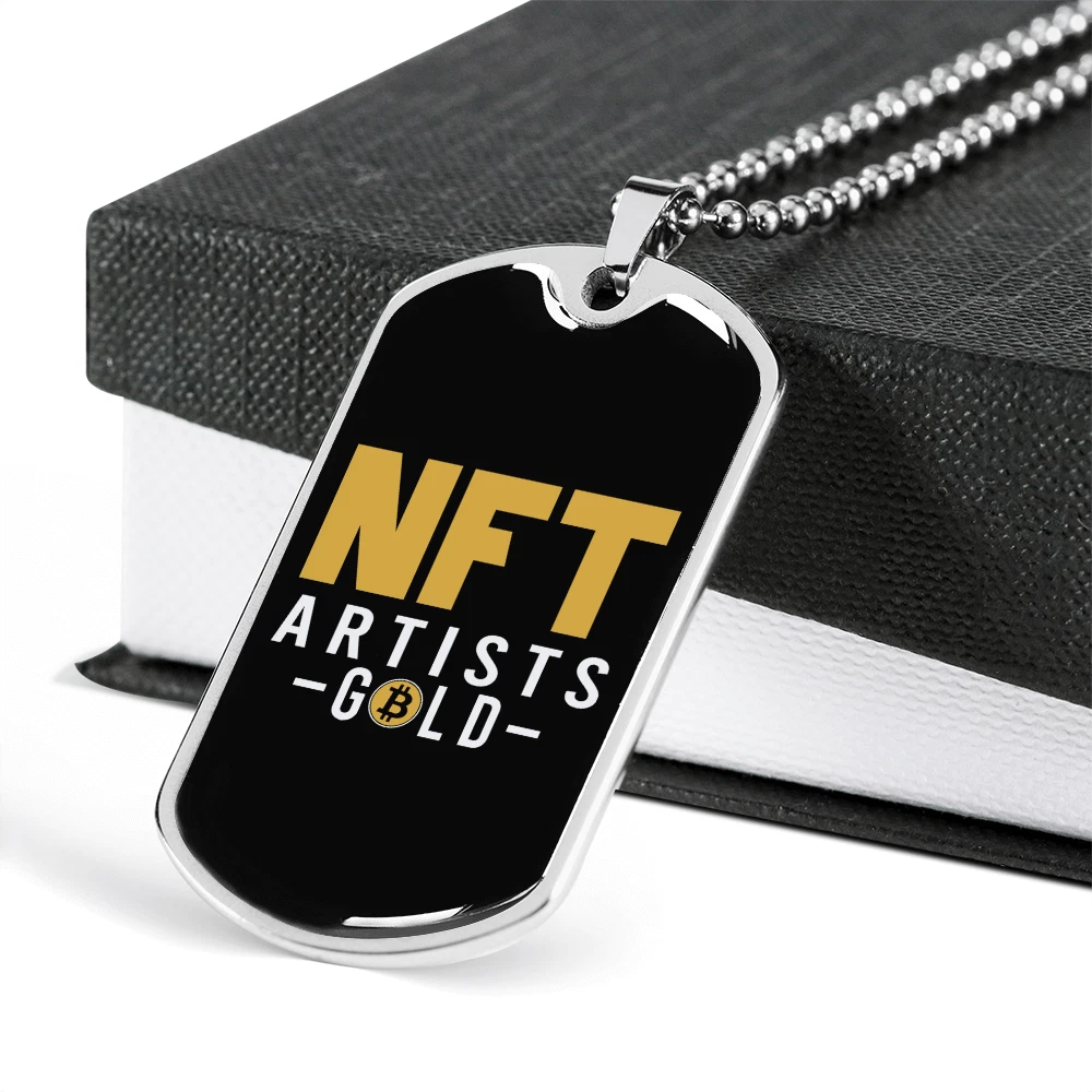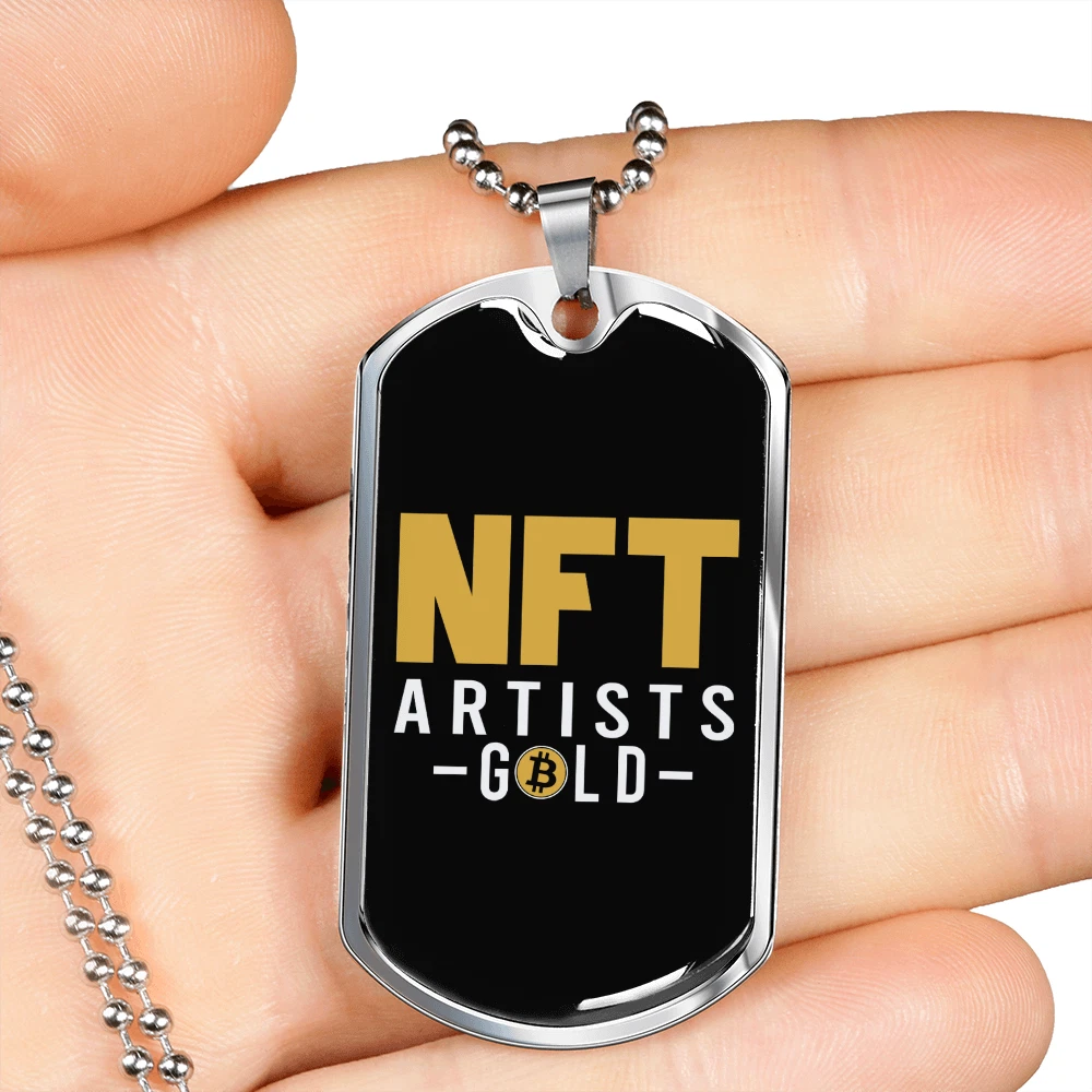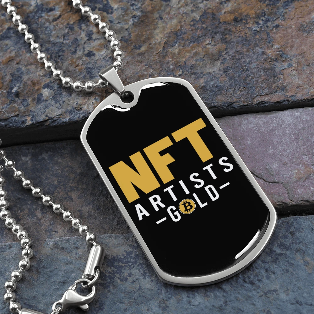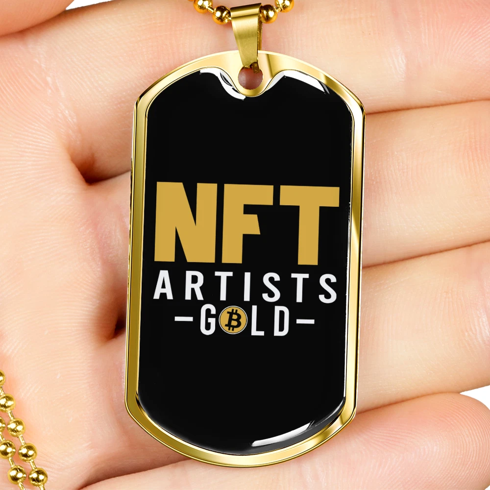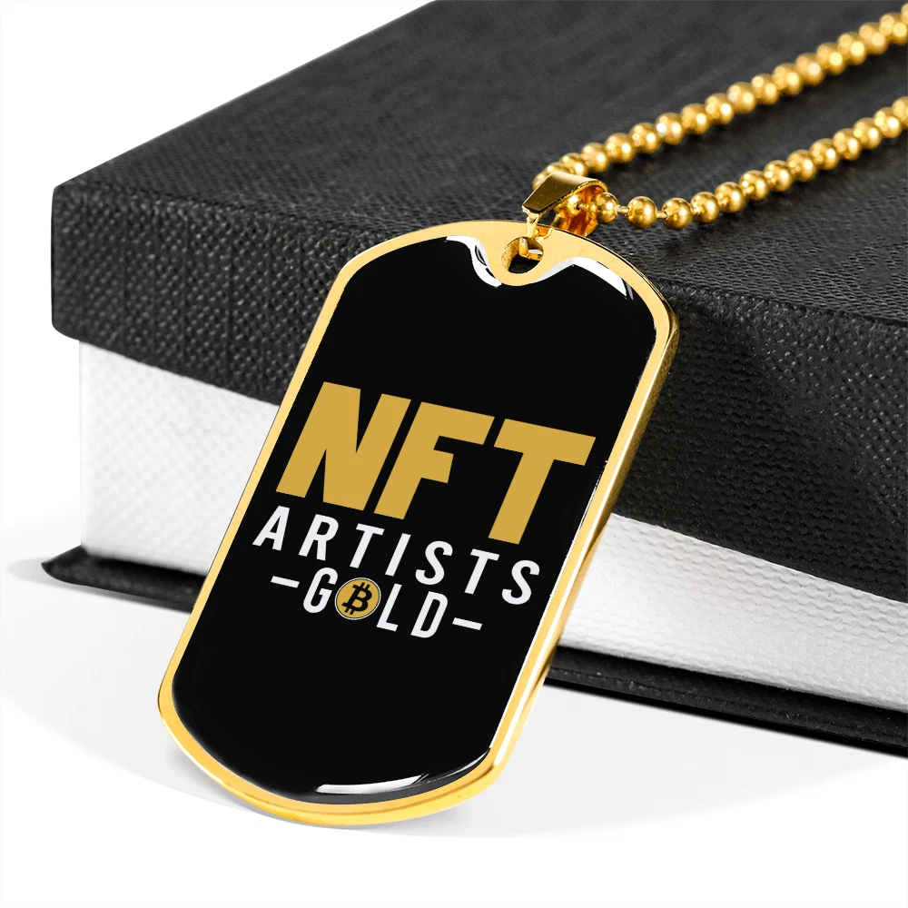 Artists Gold Necklace Stainless Steel or 18k Gold Dog Tag 24" Chain