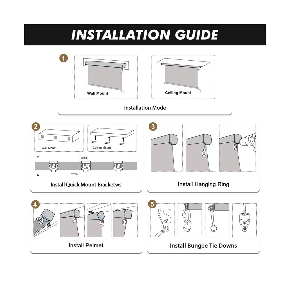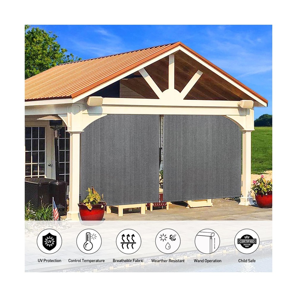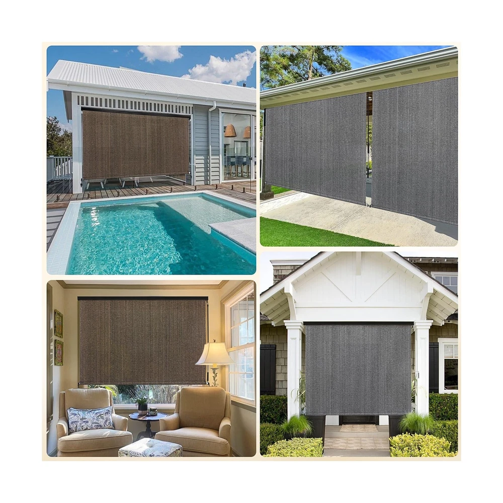 Artpuch Outdoor Roller Shade 8' W x 8' H Gray Blackout Fabric Blind with Aluminum Valance, Cordless Wand Operation, Outdoor Roll Up Shade for Patio Porch Gazebo Description Features: Versatile for Any Outdoor Setting Artpuch Outdoor Roller Shades are the perfect fit for a wide range of outdoor spaces, including porches, gazebos, patios, backyards, decks, balconies, pergolas, and more. Tailor the ambiance of your chosen scene with ease and style, from tranquil mornings with a cup of coffee to vibrant garden parties or cozy family dinners. Upgrade Material Artpuch blackout roller shades are available in colors Mocha, Gray. Made of High-Quality HDPE & durable all-aluminum tube, wind/sunlight resistant, 220 GSM, double flat C-grain weave. Cordless Wand Operation Experience effortless and convenient operation with a Cordless Wand Operation Roller Shade Pole, to create the perfect ambiance for any scene. Additionally, it ensures a safer environment for children and pets, making it ideal for family scenes and outdoor spaces where safety is a priority. Easy to Install Package come with all the necessary accessories and step-by-step instructions, and also have installation videos for quick and easy setup so you can enjoy your outdoor scene with ease.Set includes 8 drywall plastic anchors, 8 classic 304 stainless steel screws, 2 durable roller brackets, 2 durable bungee brackets and 2 beautiful bungee cords ensuring stress-free installation and scene enhancement. If anything is missing, please let us know and we will take care of it for you. Easy to Remove & Clean This roll up shade's tube and fabric are removable, clean with a soft cloth/sponge/soft bristle brush with mild detergent. Then rinse and and air-dry naturally. Please do not use a washing machine or dryer. Product Details: Material: High Density Polyethylene (HDPE) Product Dimensions: 96"L x 96"W Brand: Artpuch Color: Gray Opacity: Blackout Material: High Density Polyethylene (HDPE) Product Dimensions: 96"L x 96"W Brand: Artpuch Color: Gray Opacity: Blackout Recommended Uses For Product: Indoor,Outdoor Specific Uses For Product: Door Operation Mode: Manual Included Components: 2 durable roller brackets, 2 durable bungee brackets and 2 beautiful bungee cords Shape: Rectangular Number of Items: 23 Pattern: Solid Item Weight: 13.23 Pounds Product Care Instructions: Spot Clean Only Closure Type: Cordless Size: 96"W x 96"H Mounting Type: Outside Mount Number Of Panels: 1 Water Resistance Level: Not Water Resistant Control Type: Wand Style: Valance Manufacturer: Artpuch Item Weight: 13.23 pounds Item model number: AVRC0808-05G Delivery We Do Not Ship Outside of the Continental US. Return Policy All items qualify for returns within 30 days of receipt. Buyer is responsible for return shipping on any item that is not damaged. Feedback We take our reputation seriously, we buy and sell online, so we understand the value of trust. If you are unsatisfied with your order, please contact us and we will work with you to resolve it to your satisfaction.