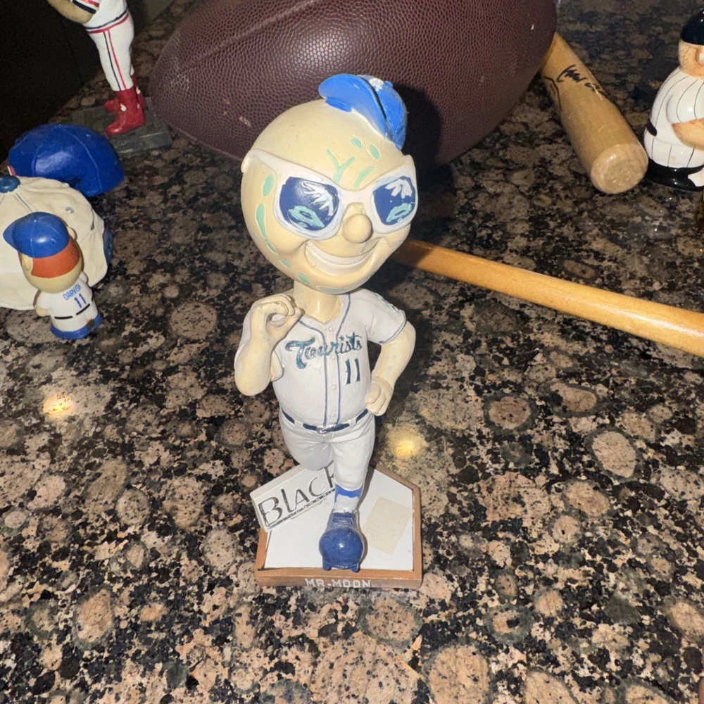 This vintage Asheville Tourists Mr. Moon bobblehead is a must-have for any baseball fan. Representing the Atlanta Braves, this collectible item is a great addition to any sports memorabilia collection. With its unique design and intricate details, it's sure to be a conversation starter. Perfect for display in your home or office, this bobblehead is a true gem for any baseball enthusiast.