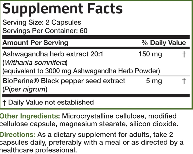 Ashwagandha 3000 Organic Root Powder & Black Pepper Extract 120- US Warehouse - FREE & FAST Shipping in US Product Description: These statements have not been evaluated by the FDA. This product is not intended to diagnose, treat, cure, or prevent any disease or health condition. Extra Strength Formula: Ashwagandha provides equivalent to 3000 mg Ashwagandha Herb Powder from 150mg 20:1 extract of high-quality Ashwagandha herb. Ashwagandha is known as an Adaptogenic herb, as it helps the body cope and adapt to various stresses that occur in daily life.* Herbal Stress Support: Ashwagandha Extra Strength helps to support a healthy stress response, maintain healthy cortisol levels, support a positive mood, and memory.* Ashwagandha additionally includes BioPerine, which has been clinically shown to enhance nutrient absorption.* Superior Quality Vegan/Vegetarian Formula: Laboratory tested Non-GMO, Gluten-Free and Soy-Free. products are in-house tested and carefully manufactured by trained professionals in our state-of-the-art facility that is located in Hauppauge, New York. Ashwagandha Extra Strength 3000 MG is Vegan/Vegetarian friendly and contains no ingredients derived from animals. cGMP Premium Standards: Every product manufactured is put through a rigorous process to ensure purity, potency and integrity. Through our very own cGMP Certified New York Facility that complies with the most current regulations, we promise to deliver top-quality supplements that are consistently verified for quality and safety. Trusted Since 1960: The pioneers of Vitamins were a group of pharmacists who witnessed the benefits of vitamins and mineral supplementation firsthand with their patients. Vitamins have been consistently mentioned by top medical professionals since our inception in 1960. Feedback: 1.Any question for your order, please contact us in time, we will reply to you within 24 hours and give you a satisfactory answer. 2.If you are satisfied with our products and services, hope to take up your a little precious time to leave feedback reviews for our products.Thanks! 3.Your satisfaction is our effort. Welcome to order again! Have a great day! Our Policy: 100% Satisfaction Guarantee 20% of restocking fee will be charged for return item