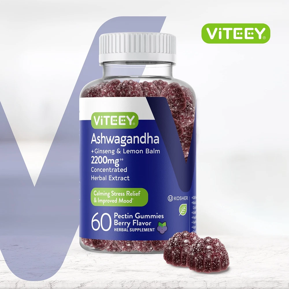 gummies 60 GUMMIES | 1 MONTH SUPPLY - Made with 2200mg of Natural Ashwagandha Root, Ginseng & Lemon Balm Extract - Based on the serving size of 2 gummies. For best results, take 2-4 gummies daily. DELICIOUS & FLAVORFUL - Our berry flavored gummies are the quickest way to get your daily dose of much-needed nutrition. CERTIFIED - Produced and formulated to a higher standard. IMRPOVED MOOD - Our specially formulated Ashwaganda gummies may help to reduce , promote relaxation, support sleep quality & overall a mood support . 's ashwaghanda extra strength gummies are perfectly formulated and combined for adults and teens. Easy & convenient to take at home or on the go. SOURCED FROM ALL NATURAL INGREDIENTS - 's Ashwagandha Gummies for women are peanut-free, tree nut-free, non-GMO, gluten-free, gelatin-free, and vegan. Each gummy contains naturally sourced colors and flavors. BRAND STANDARDS - We take pride in creating premium products from start to finish. Every item is carefully sourced, formulated, and manufactured to meet the highest quality standards. To ensure each serving is just right, we put our products through rigorous lab testing during every production. This guarantees that you receive products of utmost purity and effectiveness. Rely on us for offerings that are both dependable and of superior quality.